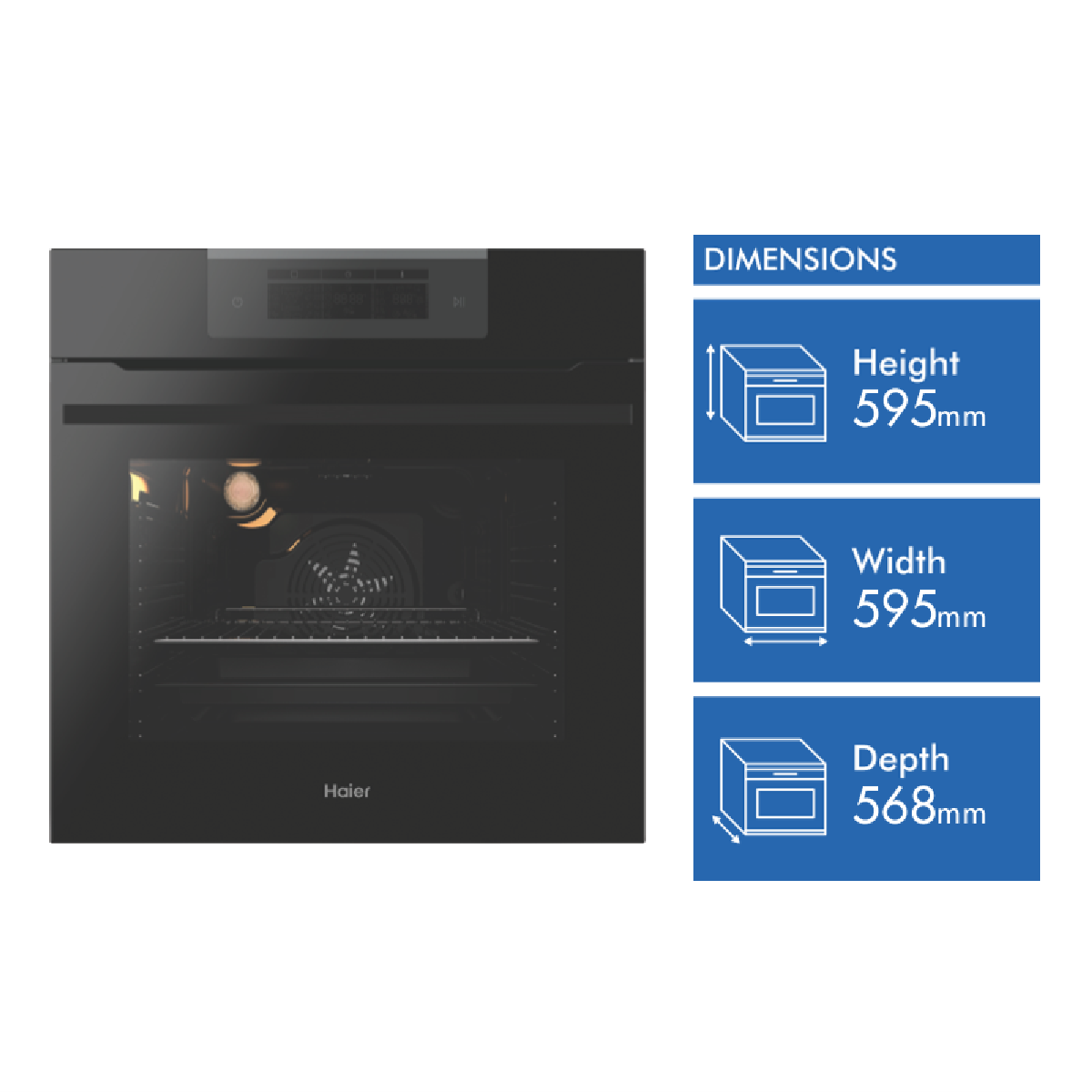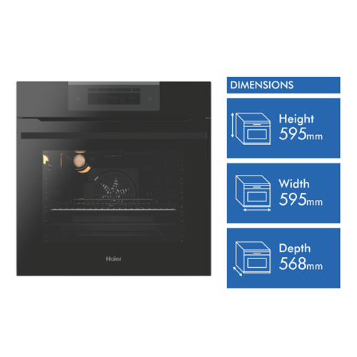 Take your cooking to the next level with the Haier 60cm Pyrolytic Oven. This sleek black electric oven not only looks fantastic in any modern kitchen but it also packs an impressive 62 litres of usable capacity into its compact 60cm wide frame. With an extensive range of 14 oven functions including air fry bake fan forced grill rotisserie and more you'll have the versatility to create everything from crispy roasts to perfect pizzas. The inclusion of special functions like Air Fry Low Temperature Cooking Pastry Plus and Pyrolytic Self-Clean add extra convenience to your cooking. The built-in pyrolytic self-cleaning function breaks down and removes stubborn grease and grime from the oven cavity through high heat leaving minimal ash for you to wipe away. This helps cut down cleaning time substantially.Innovative features like even convection heating soft-close door telescopic runners for easy access and removable oven door and inner glass for thorough cleaning make using this oven an absolute pleasure. With a 2 year manufacturer's warranty providing peace of mind the Haier Pyrolytic Oven is sure to be the heart of your kitchen for years to come.The manufacturer's part number for this product is HWO60S14EPB4. Discover how this versatile oven can make meal prep easier today.
