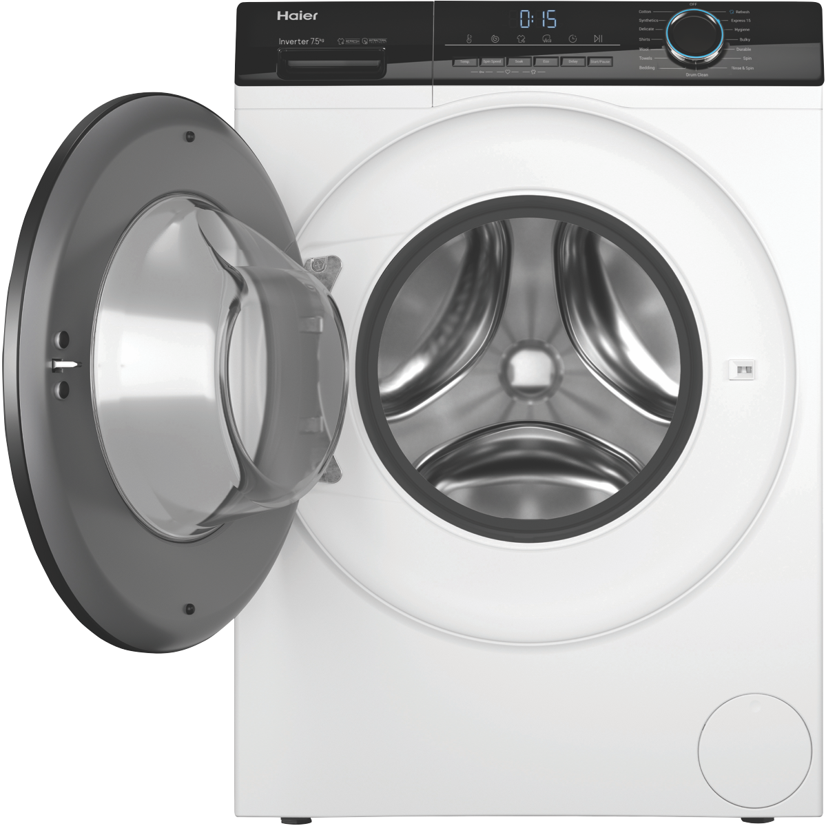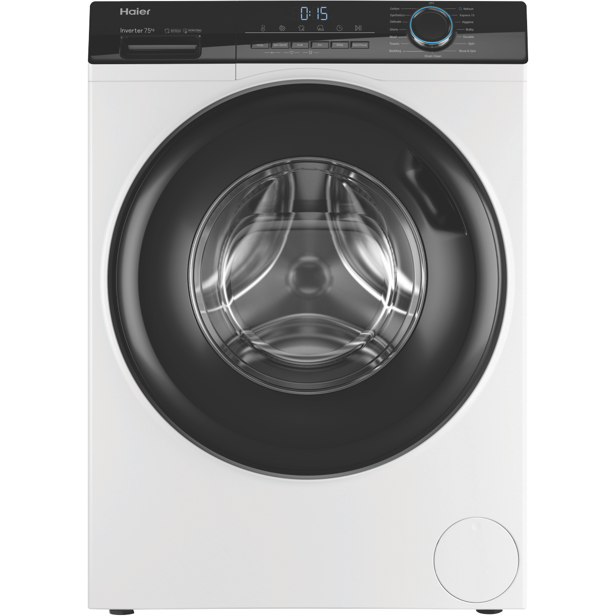 Wash and spin cycles for the whole family with the Haier 7.5kg Front Load Washer. This white front loader makes doing laundry a breeze with its generous 7.5kg washing capacity. The powerful 1200rpm spin speed helps remove more water from your clothes reducing drying time. An energy and water efficient choice it has a 4.5 star WELS water rating and 4.5 star energy rating. With 15 versatile programs like Bedding Delicate Eco Quick 15 Refresh and Wool it caters to all fabric types with options like temperature control delay start and soak. The anti-bacteria gasket ensures a hygienic clean while the stainless steel drum is gentle on clothes. Other useful features include a child lock LED display and time to go indicator. Backed by a 2 year manufacturer's warranty for peace of mind. Give your laundry routine a boost with the Haier 7.5kg Front Loader. The manufacturer's part number for this product is HWF75AW3. Learn more about the benefits this washer offers your home.