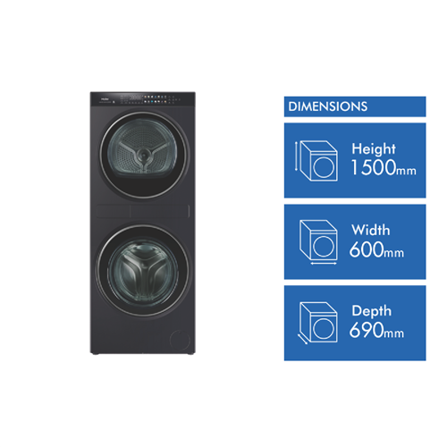 Looking for an all-in-one laundry solution that fits your busy lifestyle? Meet the Haier 12-9kg Combo Washer Dryer. This front load washer boasts a generous 12kg washing capacity and 9kg drying capacity letting you tackle more laundry in fewer loads. With 13 wash programs 11 dry programs and 10 combo programs you can easily customize your laundry routine. The 1400rpm max spin speed and steam freshen option ensure your clothes come out clean and fresh. Plus the auto dose feature and quick wash options save you time and detergent. Standing at a convenient 1.5m height this combo washer dryer is designed for easy access. And with Wi-Fi connectivity and the SmartHQ app managing your laundry is just a tap away. The HLC1290CTB1 is Woolmark certified and requires no venting making it a reliable and efficient choice for your home. Backed by a 2-year manufacturer's warranty.