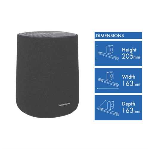 The stylish Harman Kardon Enchant Wireless Speaker lets you forget the world around you surrounding you with the music you love thanks to its up-firing drivers and Dolby Atmos® Music. You can place it anywhere in the room and the compact speaker will automatically calibrate itself to deliver spacious room-filling sound. Since it works seamlessly with AirPlay Chromecast built-in and Spotify Connect you can enjoy the immersive experience of Dolby Atmos® Music no matter where you create your playlists. And the quality of the Enchant Wireless Speaker audio is matched by its sleek minimalist design crafted in part with recycled materials which looks great in any space.