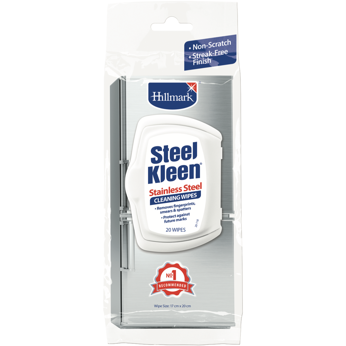 Hillmark SteelKleen EziWipes are specially designed for convenient quick and easy removal of light marks & soiling! Each towelette will wipe up to 2 sq. metres of stainless steel sufficient for 3 or more appliances.