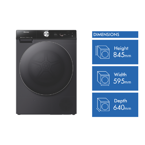 This Hisense Heat Pump Dryer makes laundry day a breeze with its 10kg capacity. It's got 20 different programs to handle all your clothes from delicates to denim. The AI Dry feature picks the best cycle for your load while the 10-star energy rating helps keep power bills down. You can even add forgotten items mid-cycle with the pause function. Plus it connects to your phone so you can monitor energy use and customize cycles. With a reversible door and drum light it's easy to use in any laundry setup. The charcoal black finish looks sleek and it runs quietly too. Check out the HDFS10HPB model backed by a 3-year warranty.