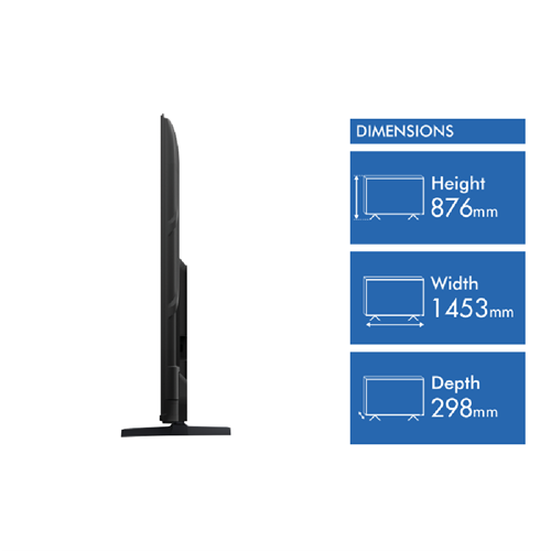 This 65 QLED TV brings your entertainment to life with stunning 4K resolution and vibrant QLED colour technology. The Hisense Q6QAU delivers impressive picture quality with HDR10+ support while Dolby Vision and Dolby Atmos create a more immersive viewing experience. It's ready for gaming with a 60Hz refresh rate and 120 motion rate for smoother action. The smart features run on VIDAA U8.5 and you can connect wirelessly via Bluetooth 5.0. Energy efficient with a 5.5 star rating it uses just 0.5W on standby. Record your favourite shows via USB and enjoy quality sound from the 2x10W speakers. Comes with a 3 year manufacturer's warranty. Model 65Q6QAU.