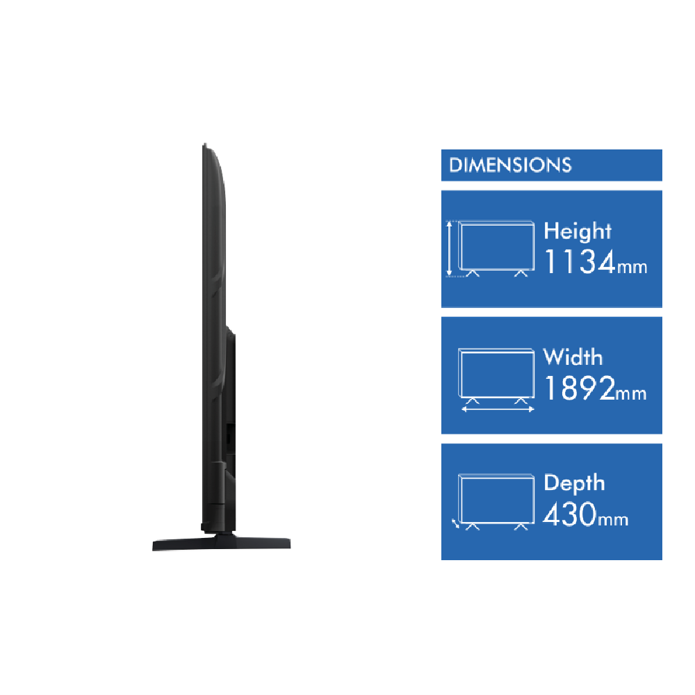 Experience cinema-quality entertainment at home with this massive 85 Hisense QLED TV. The 4K resolution (3840 x 2160) delivers incredibly sharp detail while QLED technology brings vibrant true-to-life colours to everything you watch. Enjoy premium content with both Dolby Vision and Dolby Atmos support creating an immersive audio-visual experience with rich sound from the 2x15W speakers. The smart TV runs on VIDAA U8.5 making it easy to access your favourite streaming services. With HDR10+ compatibility you'll see deeper contrasts and more detail in both bright and dark scenes. The 120 motion rate keeps fast action smooth while Bluetooth 5.0 lets you connect wireless headphones for private listening. Record your favourite shows via USB and when you're not watching it uses just 0.5W in standby mode. With a 5.5 star energy rating and 3-year manufacturer's warranty the Hisense 85Q6QAU combines impressive performance with peace of mind.