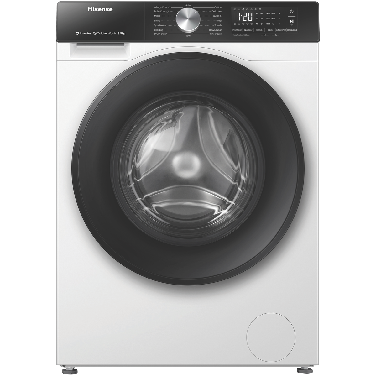 This Hisense 8.5kg Front Load Washer handles your family's laundry needs with 16 different programs to suit everything from delicates to heavy bedding. The 1400rpm spin speed helps clothes dry faster while features like Pause to Add let you throw in forgotten items mid-cycle. Keep your little ones' clothes extra clean with dedicated Baby Care and Allergy Care programs plus use the Hygiene Guard for added protection. The washer earns impressive 4.5 star ratings for both energy and water efficiency using just 73L per load. With convenient options like Delayed End and Quick 15' for those rushed mornings this medium-sized machine fits neatly into your laundry space at 845mm high 595mm wide and 540mm deep. Backed by a 3-year warranty the Hisense Series 3 (model HWF3S8514) combines practical features with reliable performance.