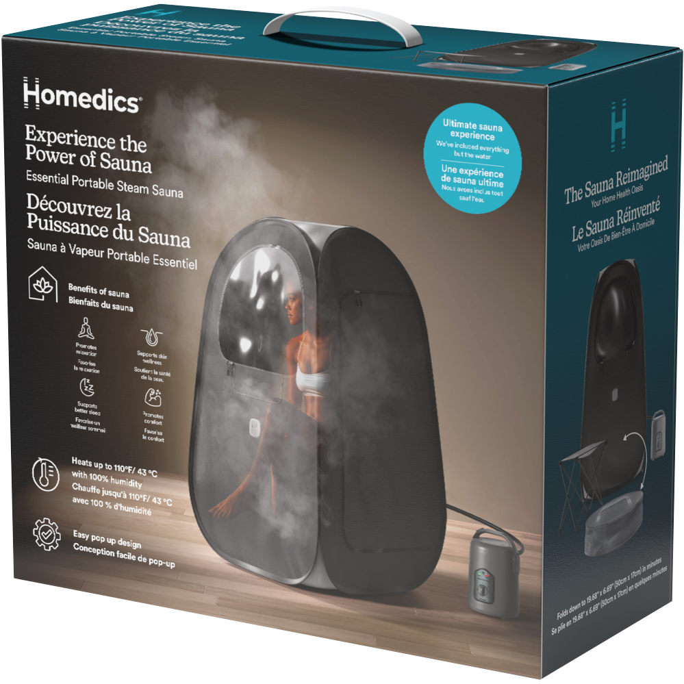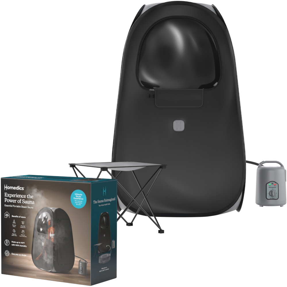 Discover the benefits of a portable sauna. Detox relaxation glowing skin and stress relief. Enjoy the Homedics Essential Personal Steam Sauna therapy anytime anywhere in your own wellness sanctuary.
