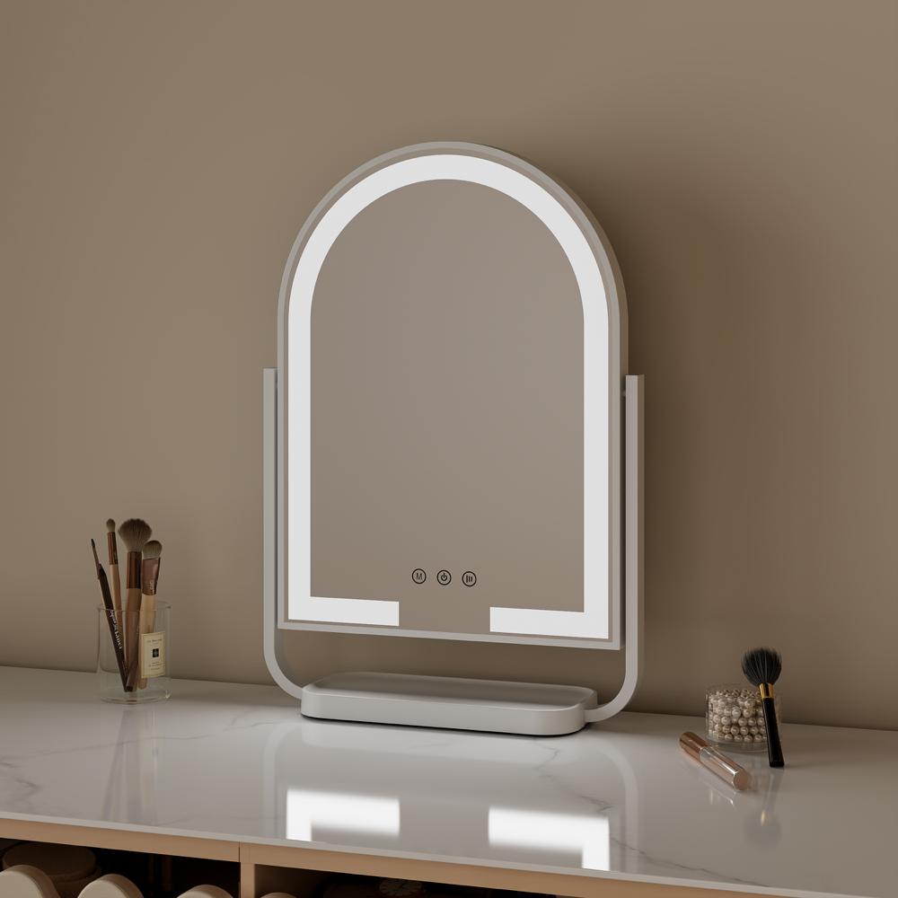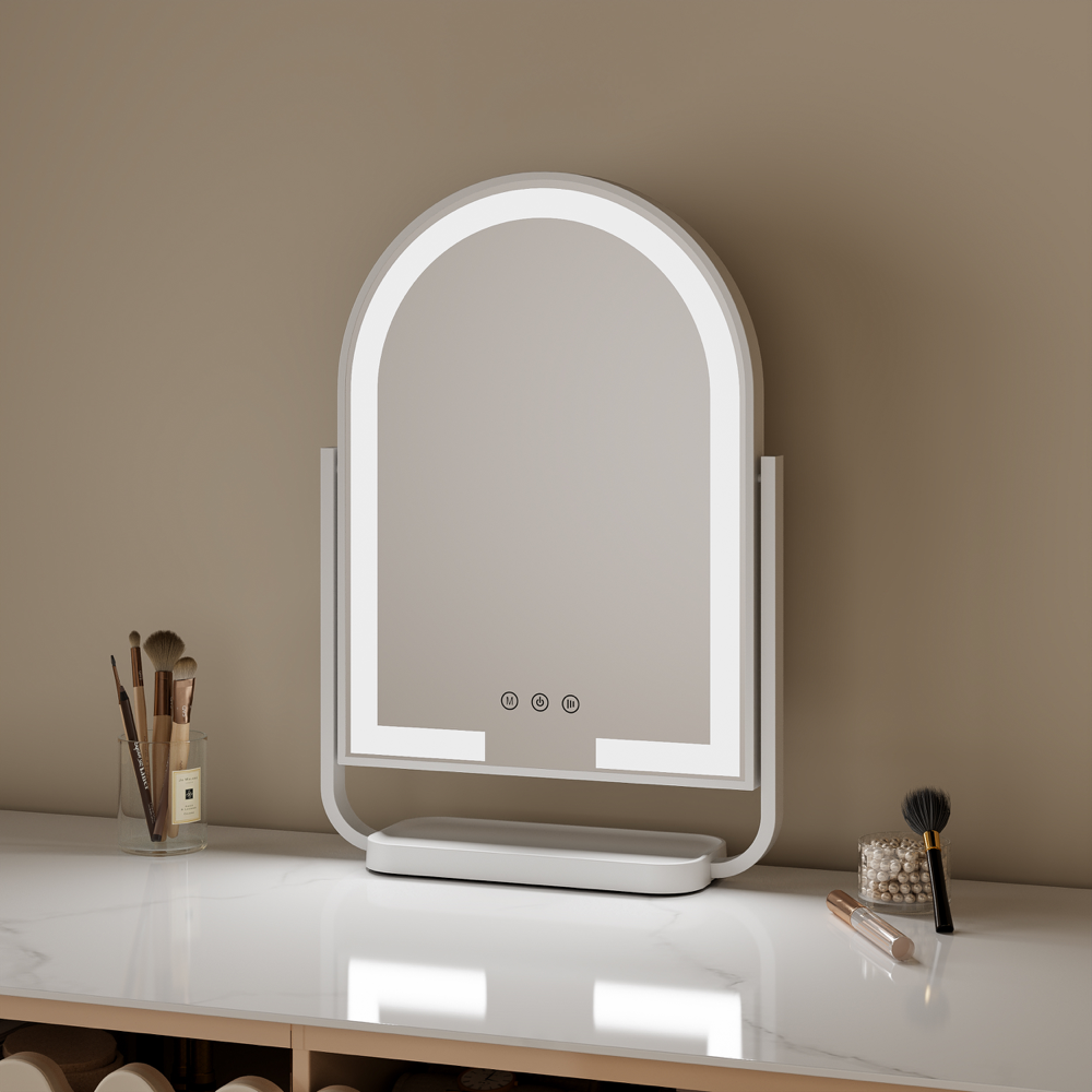 • Tabletop Arch Shape LED Vanity Mirror with 3mm thick glass and built-in organiser base