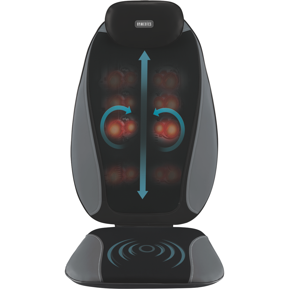 Rejuvenate your relaxation with the Homedics Shiatsu Pro Plus Massage Cushion. This black massage chair delivers soothing shiatsu massage techniques to help unwind your body. Featuring compression and percussion massage styles this cushion targets tension in your full upper or lower back with three customisable massage zones. The easy-to-use remote control allows you to control the massage experience with just the touch of a button. Additional heating capabilities provide a soothing warmth to increase relaxation. With a one year warranty this massage cushion is designed for longevity and effectiveness. The manufacturer's part number for this product is SBM-380H-AU. Bring the spa experience home and treat yourself to daily relief with the Homedics Shiatsu Pro Plus Massage Cushion.