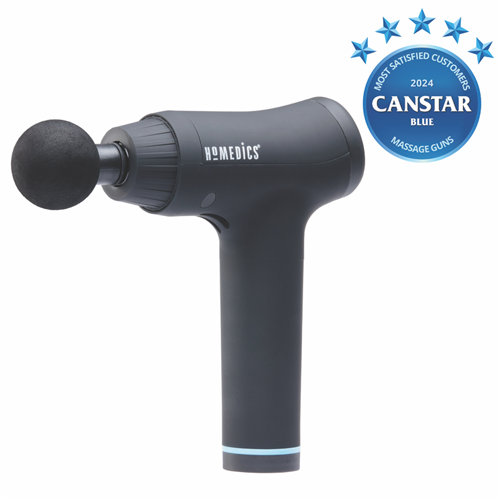 Treat your body to the powerful percussive therapy of the Homedics Therapist Select Plus Percussion Massager. This massage gun delivers a customized massage experience with its high-torque motor and 4 intensity levels ranging from 2200 to 3000 RPM. The ergonomic rubber grip provides comfort during use while the easy-to-use LCD touchscreen allows you to control the massage intensity with a simple tap. Experience relief from muscle soreness and tension with the included attachments like the wedge trigger point and ball heads designed to target specific muscle groups. Weighing only 1.76kg this cordless massager operates quietly for up to 4 hours on a single charge. Bring the professional-grade percussion massage into your home gym or take it with you on the go in the included storage case. With a 12-month warranty and 25.5W power output the Homedics percussion massager provides an invigorating deep muscle treatment. The manufacturer's part number for this product is PGM-745-AU. Give your body the care it deserves with this feature-packed percussion massager.