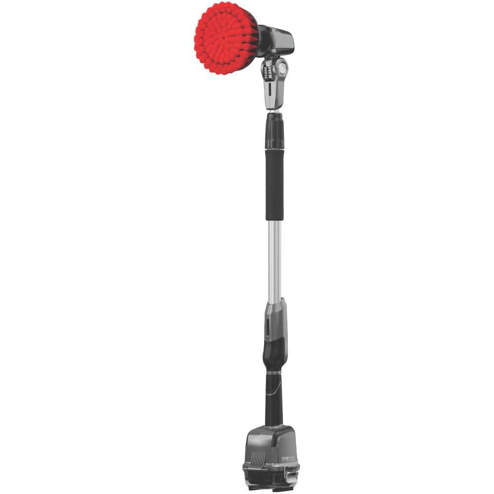 The Hoover ONEPWR Telescopic Cordless Scrubber ensures that no mess is out of reach. With up to 1.29m of extended scrubbing reach and easy powered scrubbing tackling messes inside and outside of the home is a breeze. The ONEPWR battery is protected in a a water-resistant housing which makes cleaning decks siding bathrooms and more a breeze. And with a pivoting brush head and interchangeable brushes it is easy to power through any mess