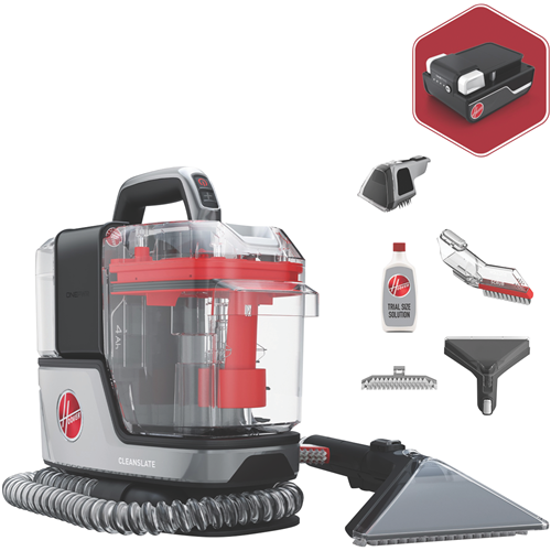 Tackle tough pet stains on carpets and upholstery with the versatile Hoover ONEPWR CleanSlate Pet Cordless Spot Cleaner. Powered by Hoover's interchangeable 18V ONEPWR battery system this lightweight 4.4kg spot cleaner packs the punch of an upright in a portable package. The 1.03L clean water tank and 0.65L removable dirty water tank make quick work of pet accidents. The CleanSlate comes with an arsenal of specialized pet tools like the Tight Spot Tool Wide Path Tool with brush and rubber attachments 2-in-1 Tool with brush and rubber attachments and Pet Tool. Simply select the right tool for the mess thanks to the fully removable dirty water tank lid and removable bristles for easy cleanup afterwards. With the CleanSlate's cordless convenience you can clean pet stains anywhere around the home without hunting for outlets. Bring new life to carpet rugs upholstery and more while enjoying the freedom of cordless cleaning. Hoover provides a 3 year warranty for peace of mind. The manufacturer's part number for this product is F18OPSC23K. Discover the portable power of the Hoover ONEPWR CleanSlate Pet Cordless Spot Cleaner today.