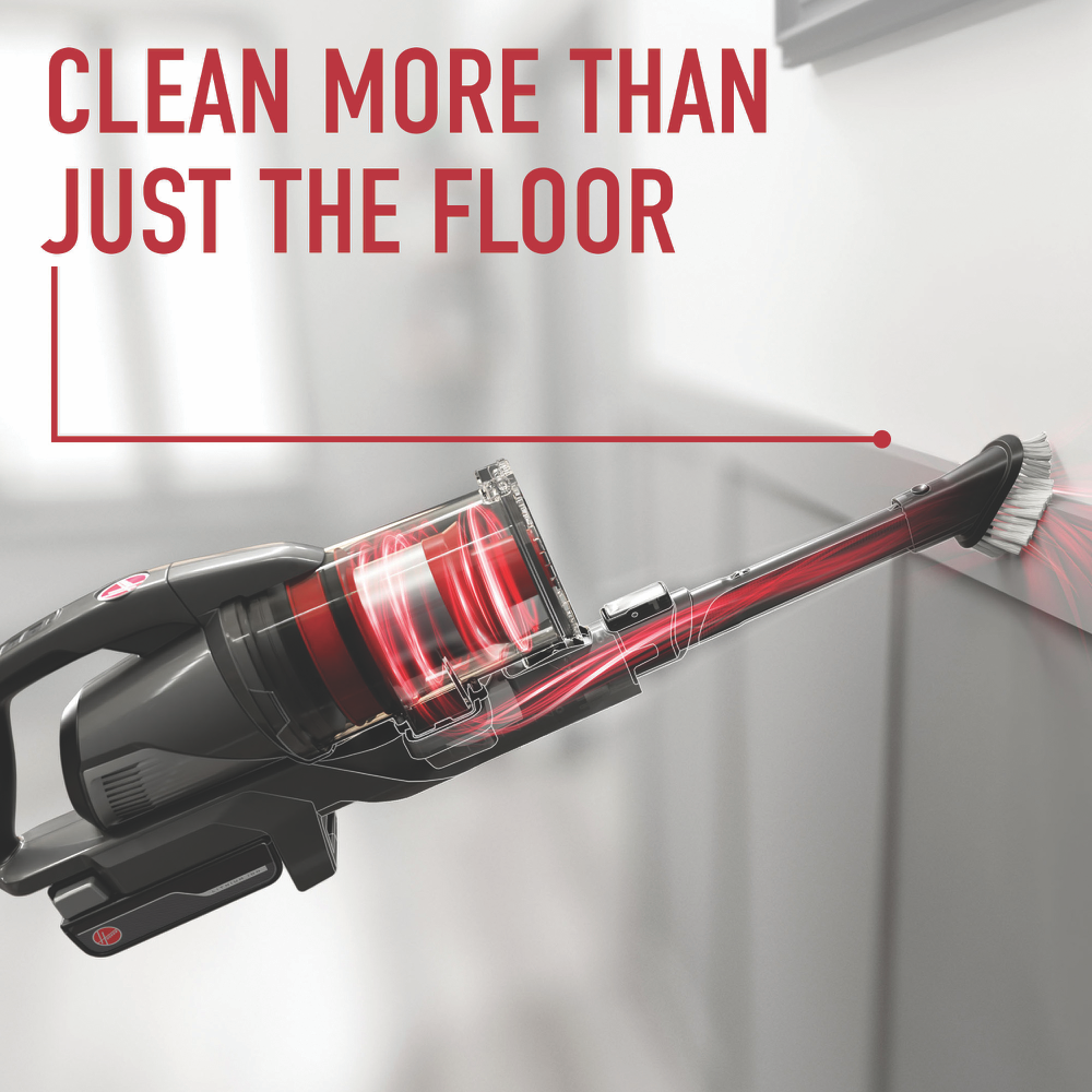 Tackle everyday messes with this ONEPWR Emerge Essentials Cordless Vacuum. It's designed for both carpet and hard floors with a Tangle Guard brush roll that helps prevent hair wrap - perfect if you've got pets at home. The 18V power with 18111 Pa suction picks up dirt effectively across three settings: Low Medium and High. The bagless design features a 0.6L bin capacity that's easy to empty while the included 4.0Ah Lithium Ion battery gives you plenty of cleaning time after a 3-hour charge. Comes complete with a 2-in-1 crevice tool wall mount tool caddy and charger in a sleek Graphite Grey finish. Includes a 3-year manufacturer's warranty. Model F18OPSV24H.