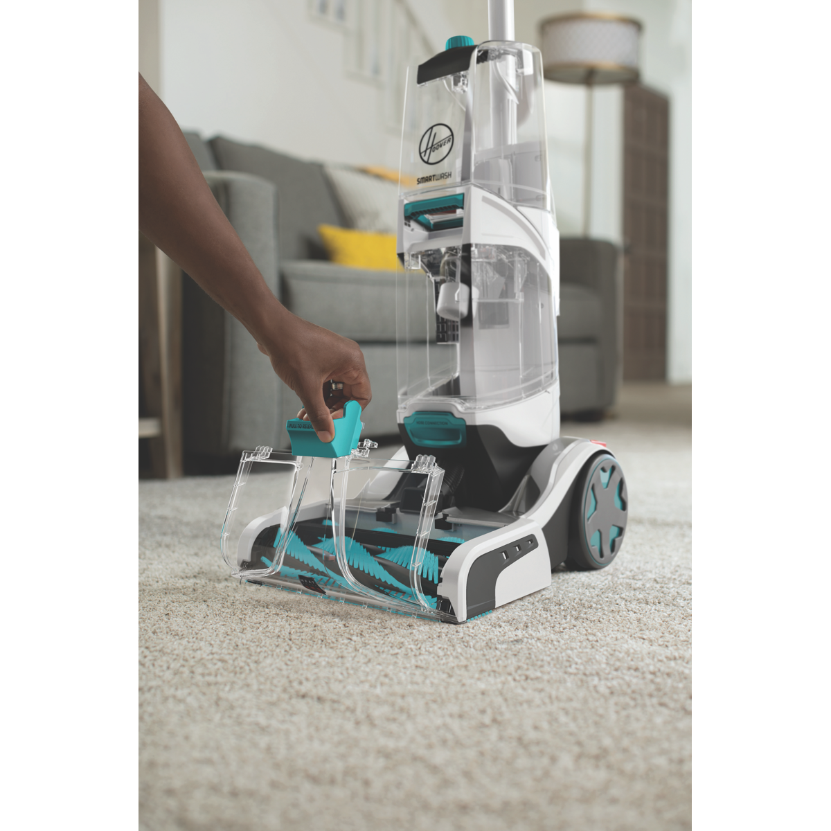 The Hoover SmartWash Carpet Washer FACSMCW20A is the world's first triggerless lightweight home carpet washer. No more mixing or soaking or waiting for chemicals to lift stains. It's the world's only carpet cleaner that uses innovative FlexForce Powerbrushes with two rolls and precisely angled bristles to help lift and remove dirt and stains. With Hoover's exclusive Automatic wash and dry motion sensing technology push forward and it mixes and dispenses the precise amount of solution and water for the area being cleaned. Then pull back as it extracts the dirty water and uses HeatForce technology to dry as fast as possible.