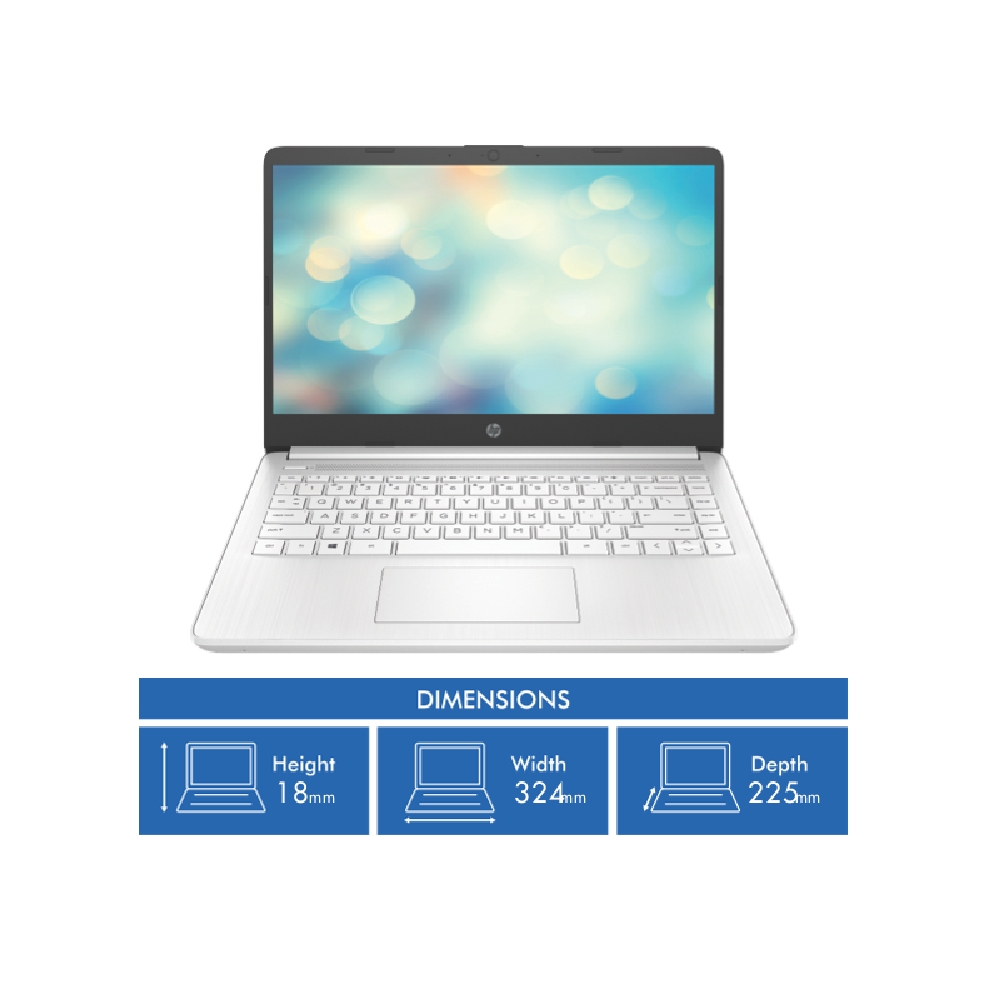 Capture your life moments with the lightweight HP 14 Celeron 4GB 128GB Laptop in snowflake white. Powered by a responsive Intel Celeron processor and Windows 11 Home in S mode this laptop lets you stream work create and connect on the move. The 14 HD display shows your content in vivid detail while the 128GB SSD offers swift responsiveness and ample storage space for photos videos and files. With up to 8 hours and 15 minutes of battery life 4GB RAM and a 720p webcam this laptop keeps you productive and entertained all day long. Connect devices via Bluetooth 5.0 Wi-Fi USB HDMI and SD card reader. At just 1.46kg it travels easily in your bag. Measuring 17.9mm high 324mm wide and 225mm deep it fits perfectly on desks trays and laps. Durable and dependable it comes with a 1 year warranty. The manufacturer's part number for this product is 7L071PA. Give yourself the freedom to work and play your way with this versatile HP laptop.