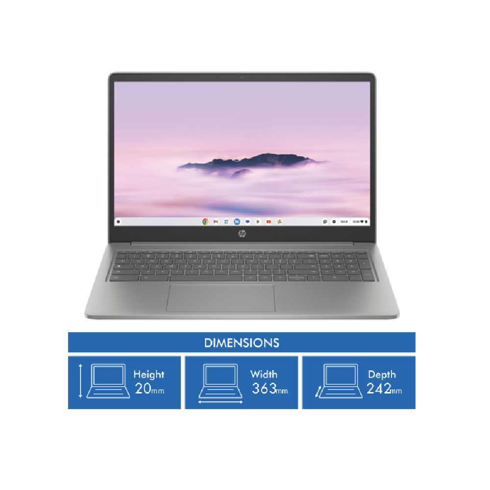 Ready to dive into the world of Chrome OS? The HP 15.6 i3 8GB 128GB Chromebook Plus (9J6K2PA) is your ticket to a seamless intuitive computing experience. With its sleek mineral silver finish and expansive 15.6 Full HD display this Chromebook is a stylish companion for work play and everything in between. Under the hood an Intel Core i3-N305 processor with 8 cores and speeds up to 3.8GHz powers through tasks with ease while 8GB of memory and 128GB of storage provide ample room for your apps documents and media. Stay connected with Wi-Fi 6 and Bluetooth 5.3 and enjoy crystal-clear video calls thanks to the HP True Vision 1080p FHD camera with noise reduction and dual array microphones. With a 58Wh battery offering up to 11 hours of use a lightweight 1.73kg design and a generous selection of ports including USB-A USB-C and a microSD card reader this Chromebook is ready to keep up with your on-the-go lifestyle. Plus automatic updates and the Titan C2 chip ensure your device stays secure and up-to-date. Experience the best of Chrome OS with the HP 15.6 i3 8GB 128GB Chromebook Plus backed by a 1-year manufacturer's warranty.