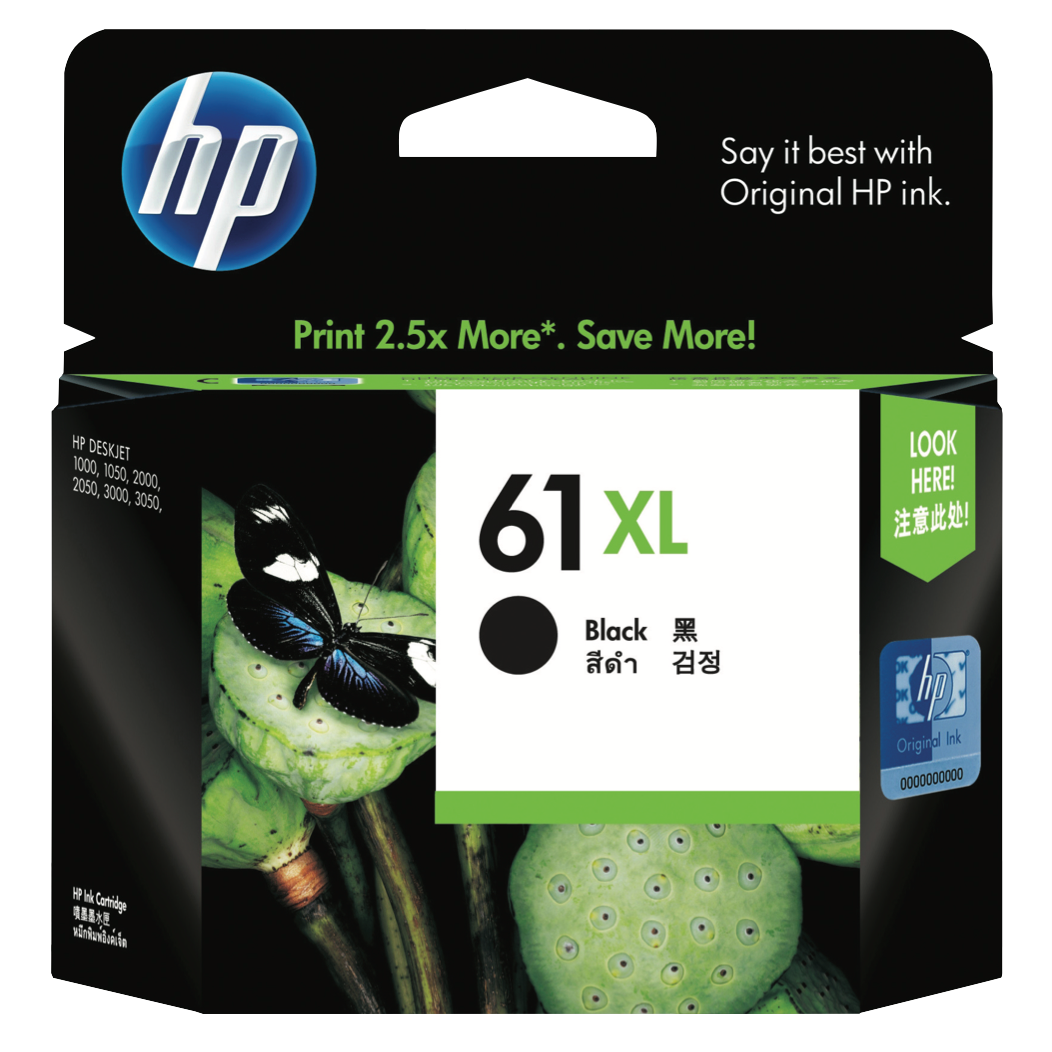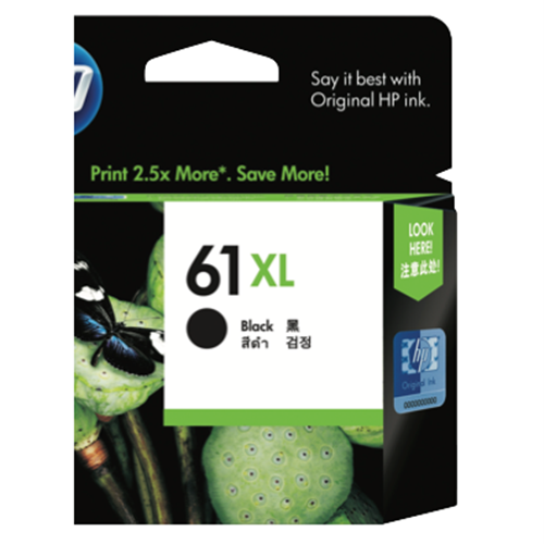 Step into a world of crisp sharp printing with the HP 61 XL Black Ink Cartridge. This cartridge delivers laser-quality text and vivid graphics to all your documents and photos bringing your ideas to life. With the ability to print up to 455 pages you can rely on this cartridge for all your high-volume printing needs. Specially designed for Deskjet and Officejet printers the cartridge produces professional prints while maximizing your printer's performance. The rich pigment-based ink saturates pages with deep blacks and vivid colors. Your prints will come out crisp and clear time after time. So when you need impressive printing that keeps up with your creativity choose the HP 61 XL Black Ink Cartridge. The manufacturer's part number for this product is CH563WA. Make your mark with professional-quality printing results from HP.