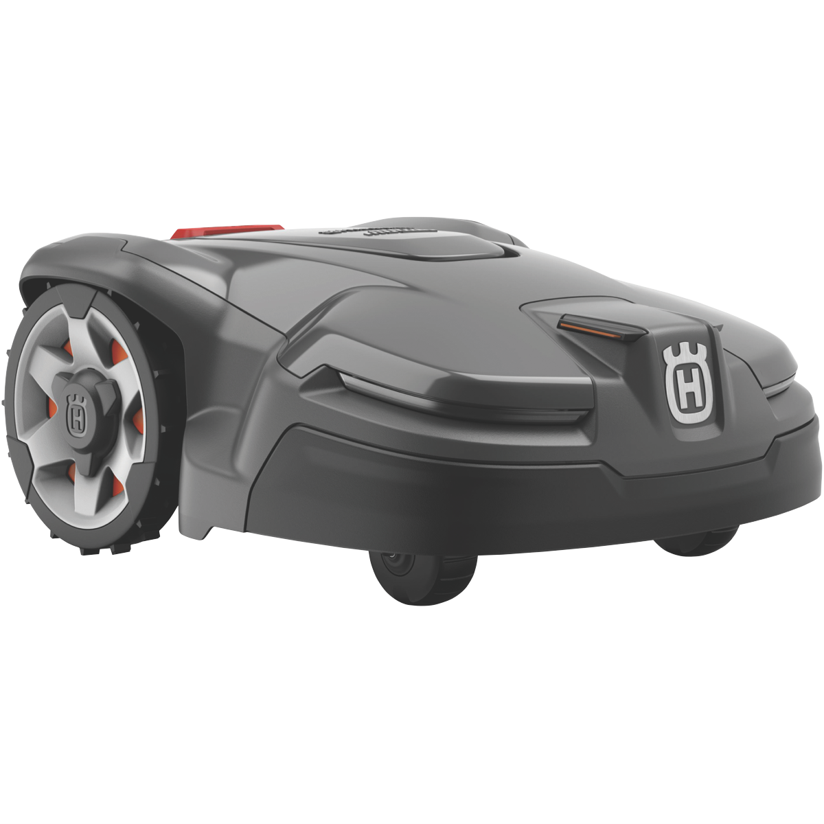 Husqvarna Automower® 415X - a reliable and high-performance model in the X-line series suited for the mid-sized lawn. It mows complicated lawns up to 1500m2 featuring systematic passage mowing for perfectly cut narrow passages and it easily handles slopes with an incline of 40% (22 ). Carefree operation thanks to electric cutting height adjustment target height function frost guard and weather timer. Easily cleaned and washed off with a hose. As a member of the premium X-line range it features Automower® Connect with GPS theft tracking and GPS-assisted navigation to keep you in control where ever you are and X-line design with LED Headlights front bumper and special coloured wheel caps. Also equipped with FOTA (automatic firmware updates over the air).