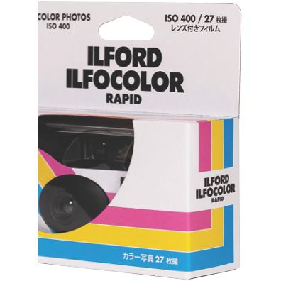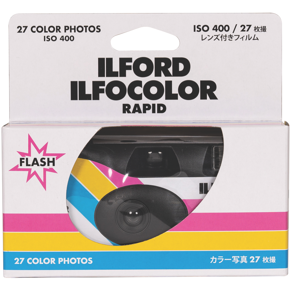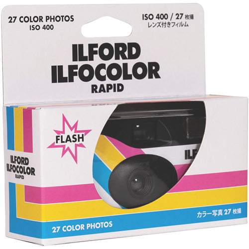 The ILFORD ILFOCOLOR RETRO Single use camera is pre-loaded with 27-exposure ISO 400 colour negative film. The fast film combined with a built-in flash makes the ILFOCOLOR camera a versatile performer delivering great results outdoors and indoors in low light as well.The camera features an optical viewfinder essential when shooting in bright sunlight. It s equipped with a fixed-focus wide angle (31mm) f11 lens. Shutter speed is 1/125 sec and delivers sharp images down to 1m.It s pre-loaded with an AAA battery with a 15-second recycle time for low light shooting and fill flash in bright daylight.