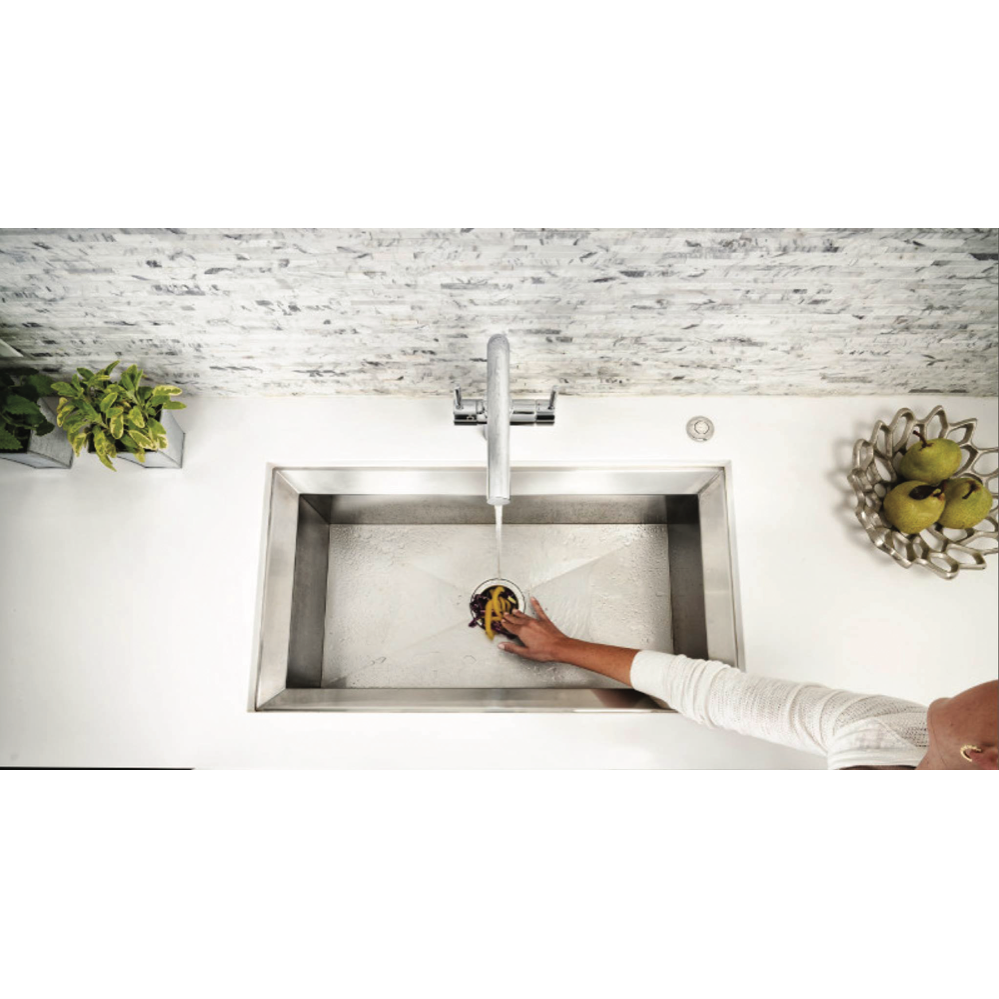 Keep your kitchen hygienic and clean with the Insinkerator Model 56 Food Waste Disposer. This unit transforms lighter household food scraps into finely ground particles within seconds. Simply place your fruit and veggie food scraps inside your kitchen sink and activate the disposer with the quick access air-switch to begin the grinding process. The fine particles are transported through your septic system to the wastewater treatment plant so there is no need to empty the grinding chamber and making it easy to maintain. Dispose of your food waste then and there without it all pilling up allows your kitchen environment to stay safe and clean without creating odour bacteria and an insect infestation. With its standard Sound Reduction Technology you can operate this disposer without disrupting your household without any noise rising from the sink. The Food Waste Disposer 56 is a smart choice for food waste management in your kitchen.