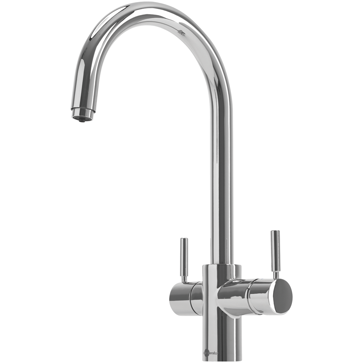 Add a stylish touch to your kitchen with the Insinkerator Multitap J Shape Chrome. This sleek J-shaped tap crafted from durable chrome is designed to complement any contemporary decor. The smooth curves and elegant shape create a modern look while the single lever handle allows you to adjust water flow and temperature with ease. Whether you need to fill a pot or rinse vegetables this tap makes kitchen tasks simple. With a handy pull-out spout that extends your reach rinsing large cookware is a breeze. The aerator helps conserve water by mixing air into the flow. Bring chic style and smart functionality to your sink with the Insinkerator Multitap. The manufacturer's part number for this product is 3003JC.