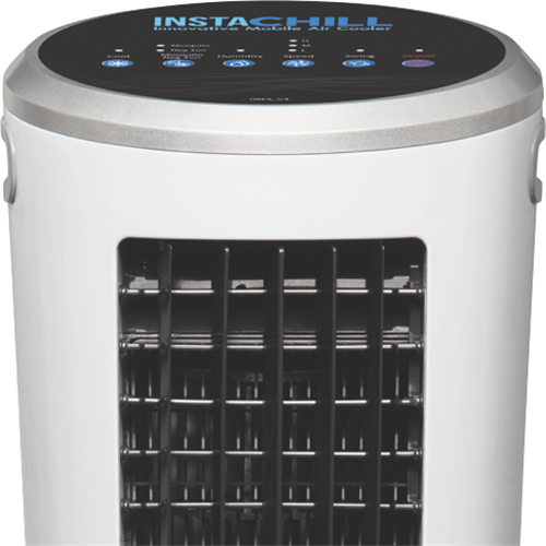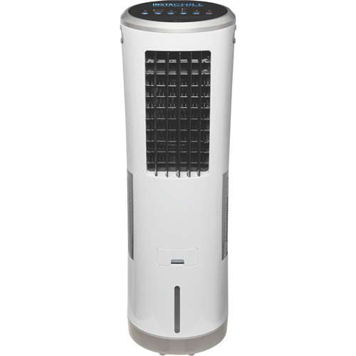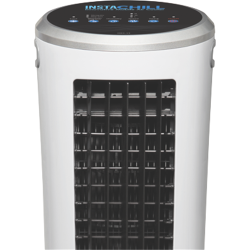 Stay cool anywhere with this portable Instachill Evaporative Cooler featuring three speed settings to match your comfort needs. The convenient soft-touch control panel and included LCD remote control let you adjust settings without getting up from your chair. Standing 910mm tall with a depth of 280mm this white cooler fits easily into various spaces while providing cooling relief on hot days. Comes with a 1-year manufacturer's warranty for peace of mind. Model ICHIL_09EX V3.