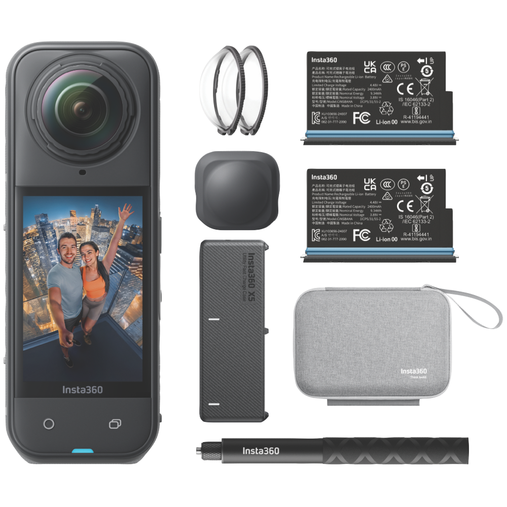 With 360º video capturing everything around you just hit record find your focus and choose the best angles later with AI-powered reframing tools in the Insta360 app. Unlike regular cameras that require multiple takes positions or devices to film different perspectives X5 packs every possible angle into a single shot a multi-cam setup in one!