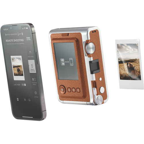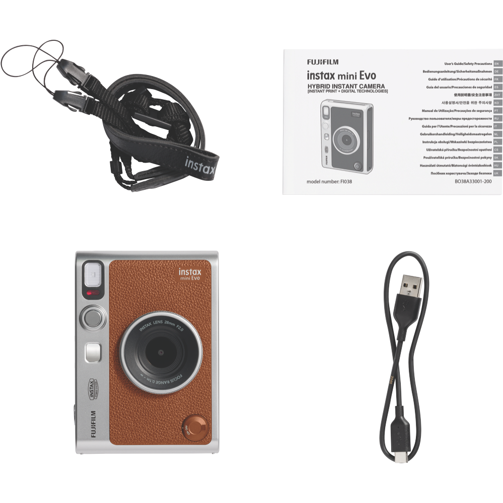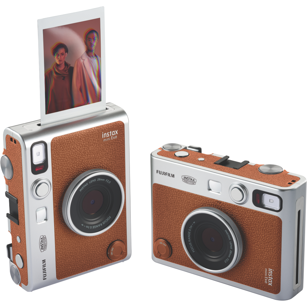 Capture life's moments with the Fujifilm Instax Mini Evo Camera in stylish brown. This instant camera combines digital and analog featuring a 3-inch colour LCD screen and a 28mm lens with F2.0 aperture. You can get creative with 10 different lens effects then save your favourites to the internal memory that holds about 45 images. For more storage add a microSD card (sold separately) to store approximately 850 images per GB. The camera uses USB Type-C for charging and works with Fujifilm Mini film (sold separately) for 62mm x 46mm prints. Comes with a 1-year manufacturer's warranty. Model 85374.