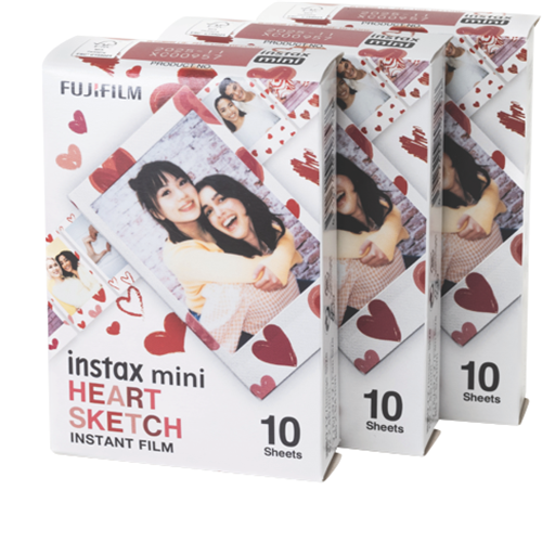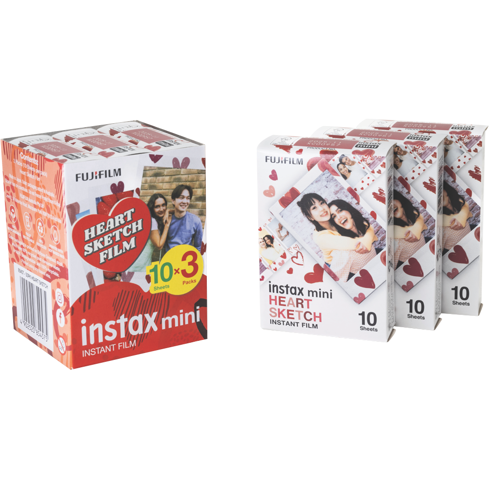 Add a touch of heart to your Instax photos with this Mini Heart Sketch Film 30 Pack. The white film features charming red heart borders giving your instant memories a sweet romantic feel. Compatible with Instax cameras this replacement film comes in a convenient pack of 30 shots so you'll have plenty for your next celebration or gathering. The distinctive white and red colour scheme adds personality to every snapshot you take. Model 85457.