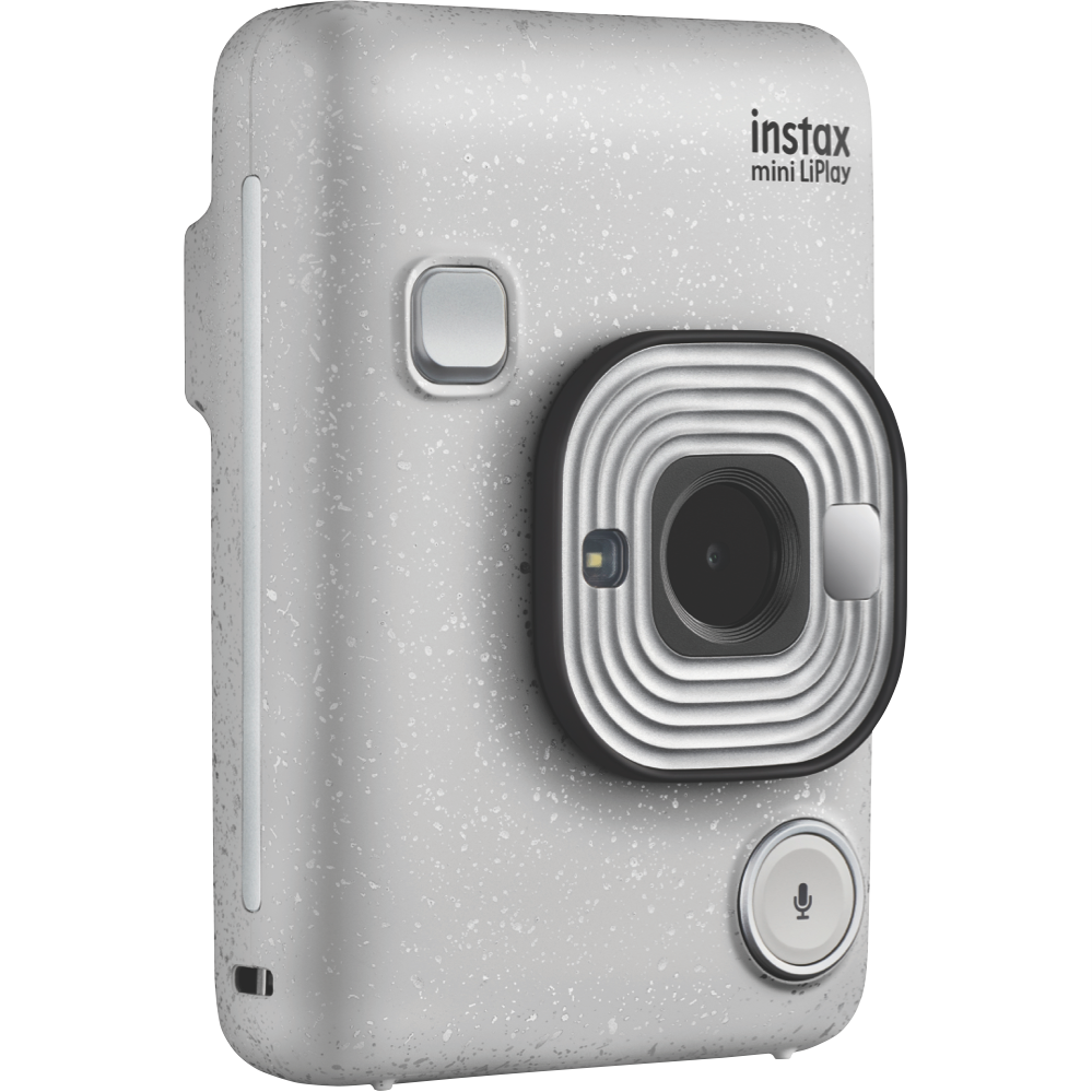 Capture memories instantly with the Fujifilm Mini Liplay Camera in elegant Misty White. This compact camera features a 28mm focal length lens and a bright 2.7-inch TFT colour LCD screen for easy viewing. Store your photos on a microSD card (sold separately) while enjoying creative options with 6 built-in filters and 10 frames with more available through the dedicated app. The self-timer function makes group shots simple and the rechargeable lithium-ion battery gives you approximately 100 prints on a single charge. Compatible with Fujifilm Instant Colour Film instax mini (sold separately). Comes with a 1-year warranty. Model 88099.