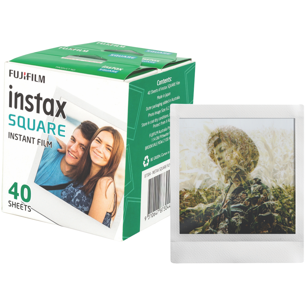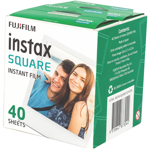 Keep your Instax Square camera or printer stocked with this 40-pack of square film giving you plenty of shots for all your memories. Each sheet produces crisp 72 x 86mm photos with classic white borders that perfectly frame your images. The film works seamlessly with any Instax SQUARE camera or printer including the SQ1 SQ6 SQ20 Square Link and older square models in the range. Simply load it up and start capturing those special moments right away. Model 87304.