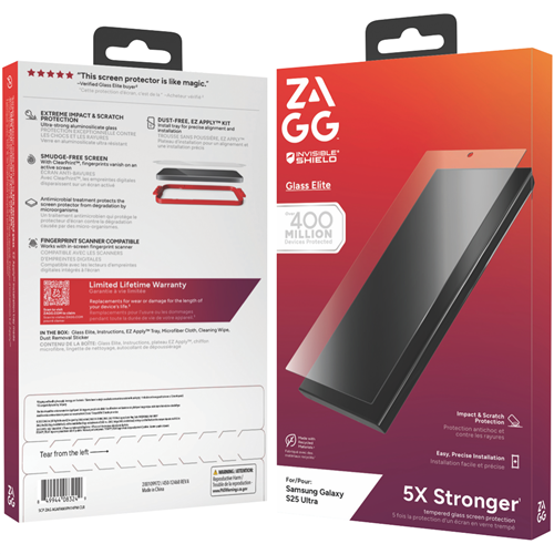 Protect your Galaxy S25 Ultra's screen with this InvisibleShield Glass Elite Screen Protector. It keeps your phone's display safe from scratches and cracks so you can use it worry-free. The clear design doesn't get in the way of your screen's colors or touch sensitivity. It's easy to put on and fits the S25 Ultra perfectly. This screen protector is tough enough to handle daily use and comes with a 2-year warranty for peace of mind. Keep your phone looking new with this reliable screen guard. Part number: 11901331117.