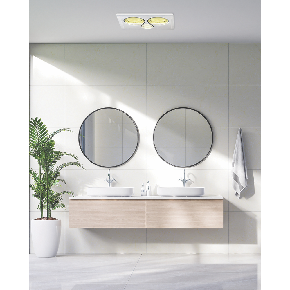Tastic Easy Duct Triumph is a 3 in 1 Bathroom Heater Fan and Light by IXL. The 10W LED centre light provides illumination while the two 275W powerful heat lamps provide instant warmth on those cold winter mornings. The inline extraction fan keeps your bathroom clear from moisture and odours all year round. The unit comes with 6 metres of Flexi-Duct and features self-sealing back draught shutters that prevent draughts and insects entering the unit while not in use. This exhaust fan with light and heater is suitable for 5-star energy rated homes.