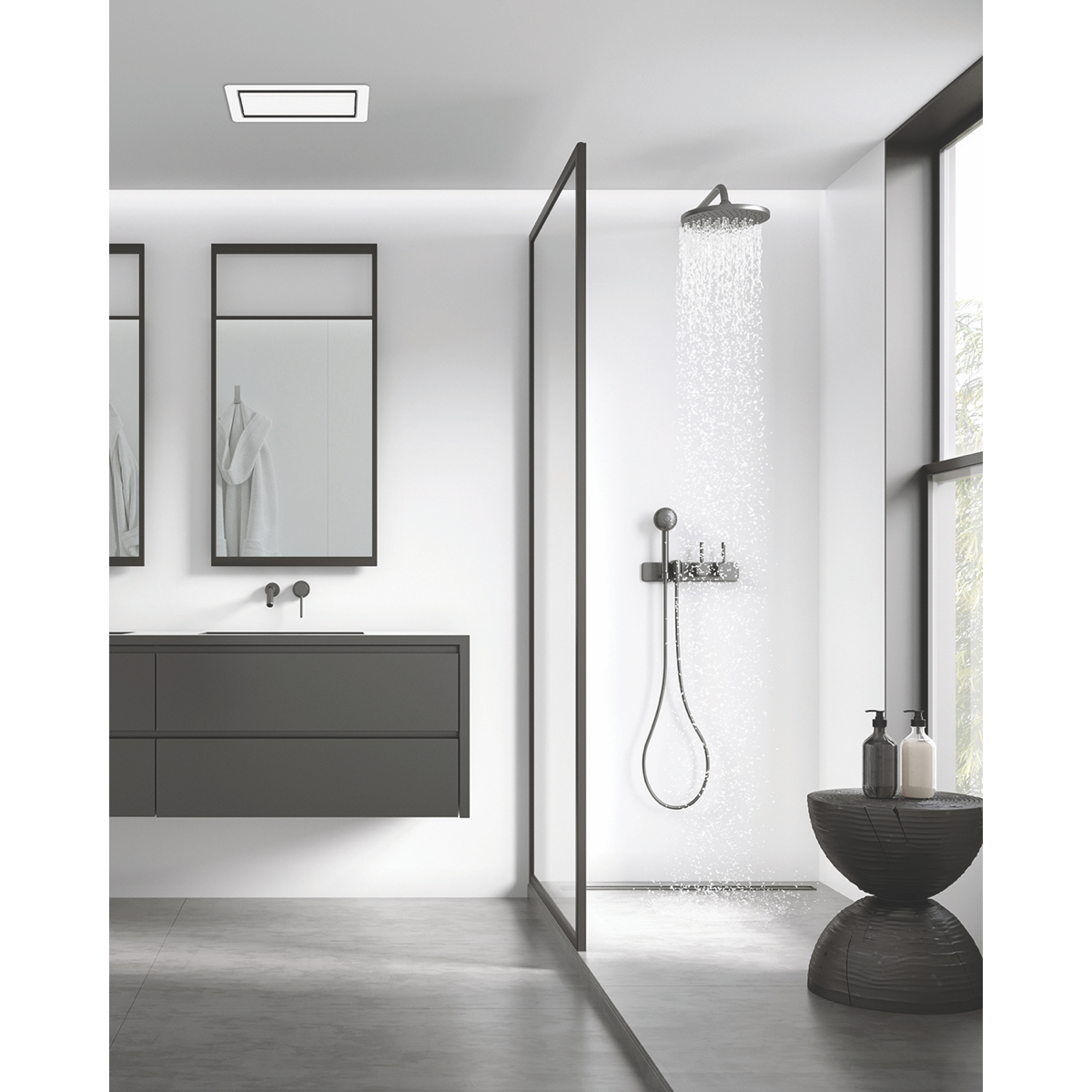 The Tastic Luminate Essential Vent & Light Module features a powerful bathroom ceiling exhaust fan and LED light. With its powerful airflow extraction the exhaust fan quickly removes steam from your bathroom laundry toilet or powder room effortlessly. Luminate Essential Vent & Light Module has an IPX4 rating making it suitable for above shower installation.
