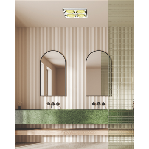 The new Tastic Paramount is a Bathroom Heater Fan and Light suited to medium sized bathrooms.With a powerful extraction rate the Tastic Paramount's exhaust fan provides bathroom ventilation by quickly removing steam allowing for a clean and clear environment.This 3 in 1 Bathroom Heater contains four 275W heat lamps that provide rapid warmth during the cooler seasons making the Tastic Paramount perfect for many bathroom applications.The Tastic Paramount features a multi-option LED globe allowing you to easily interchange between Warm Cool and Daylight illumination at the flick of a switch customising the light setting to your preference.