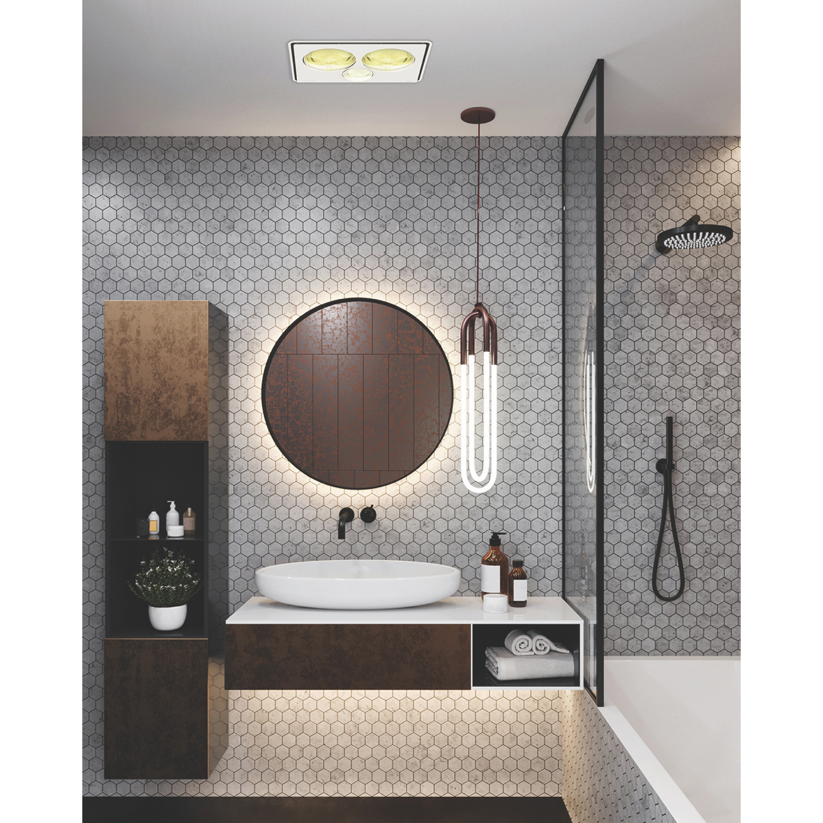 The IXL Tastic Vivid 2 in 1 Bathroom Heater and Light is a new addition to IXL's innovative Tastic Classic range.Tastic Vivid's two 275W modern bathroom heat lamps rapidly warm you when the chill kicks in whilst its multi-option LED globe allows you to easily interchange between Warm Cool and Daylight illumination at the flick of a switch to customise the light setting to your preference.