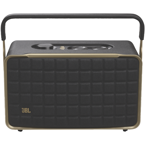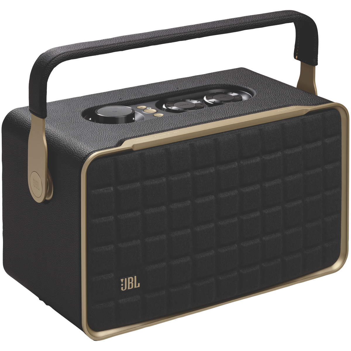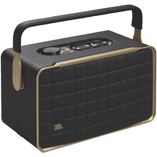 Additional Features Cast aluminium handle and custom leather enclosure give it a retro appeal, Features intuitive controls and the JBL One App (download required), so you can easily customise its settings, 8 hrs Audio Playback Battery Life