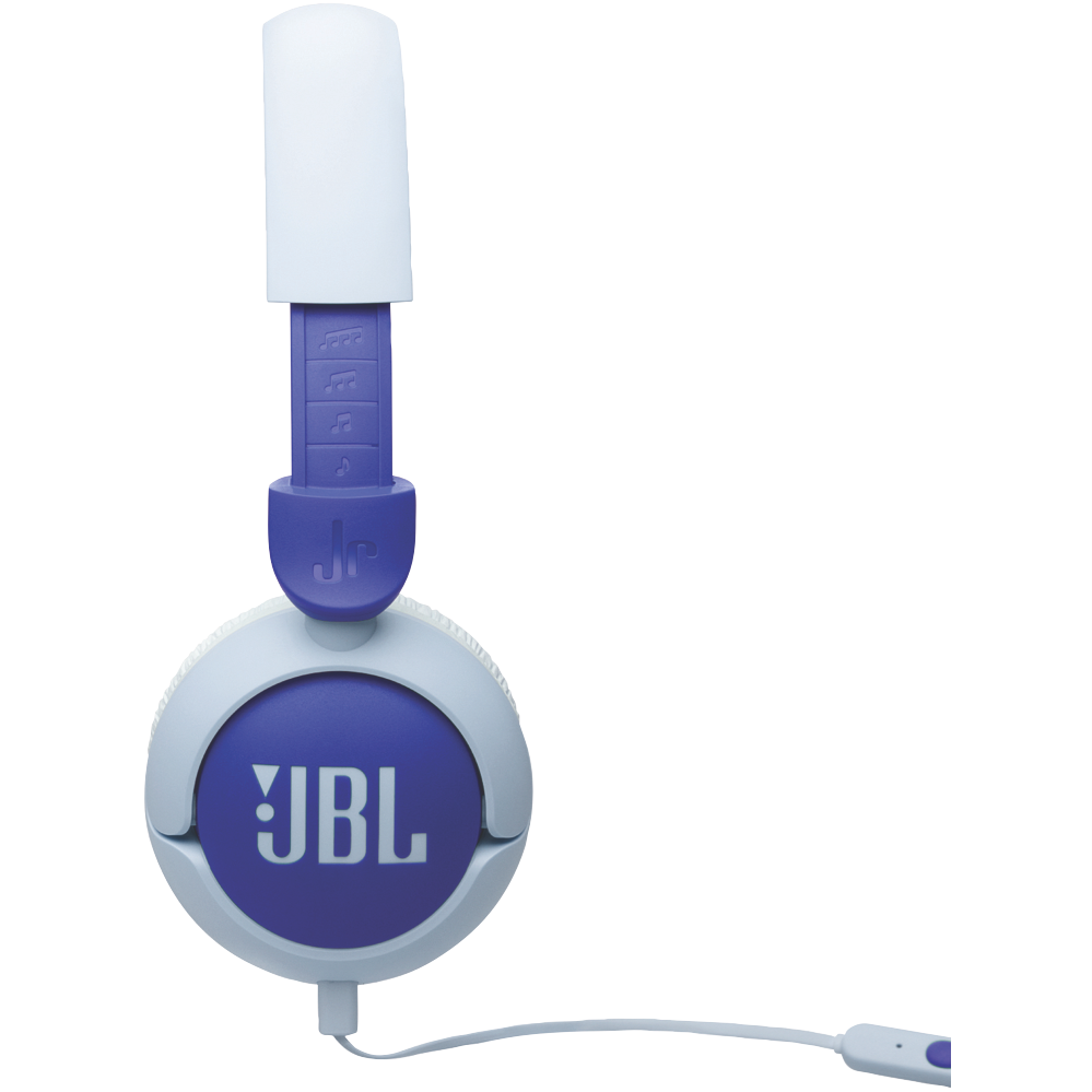 JBL Junior 320 wired on-ear headphones introduce a whole new generation to JBL sound at volumes that are safe for their ears. They won t go beyond 85dB protecting young listeners from dangerous sound levels. Designed for young listeners the JBL Junior 320 are comfortable to wear with durable oversized controls that are easy for even the littlest hands to use. A built-in mic lets kids chat with family friends or teachers easily. The headphones include a JBL sticker set so your little rockstars can personalize their look. Great sound has no age limit.