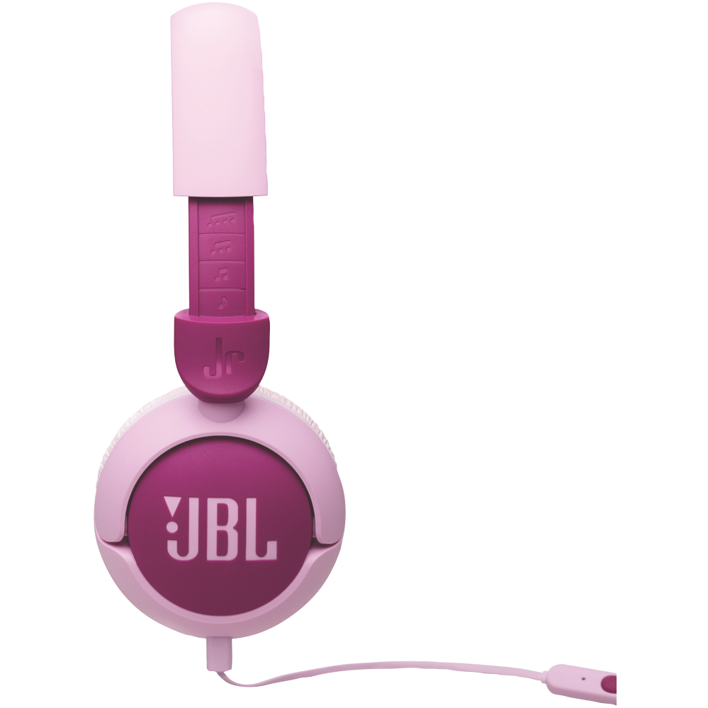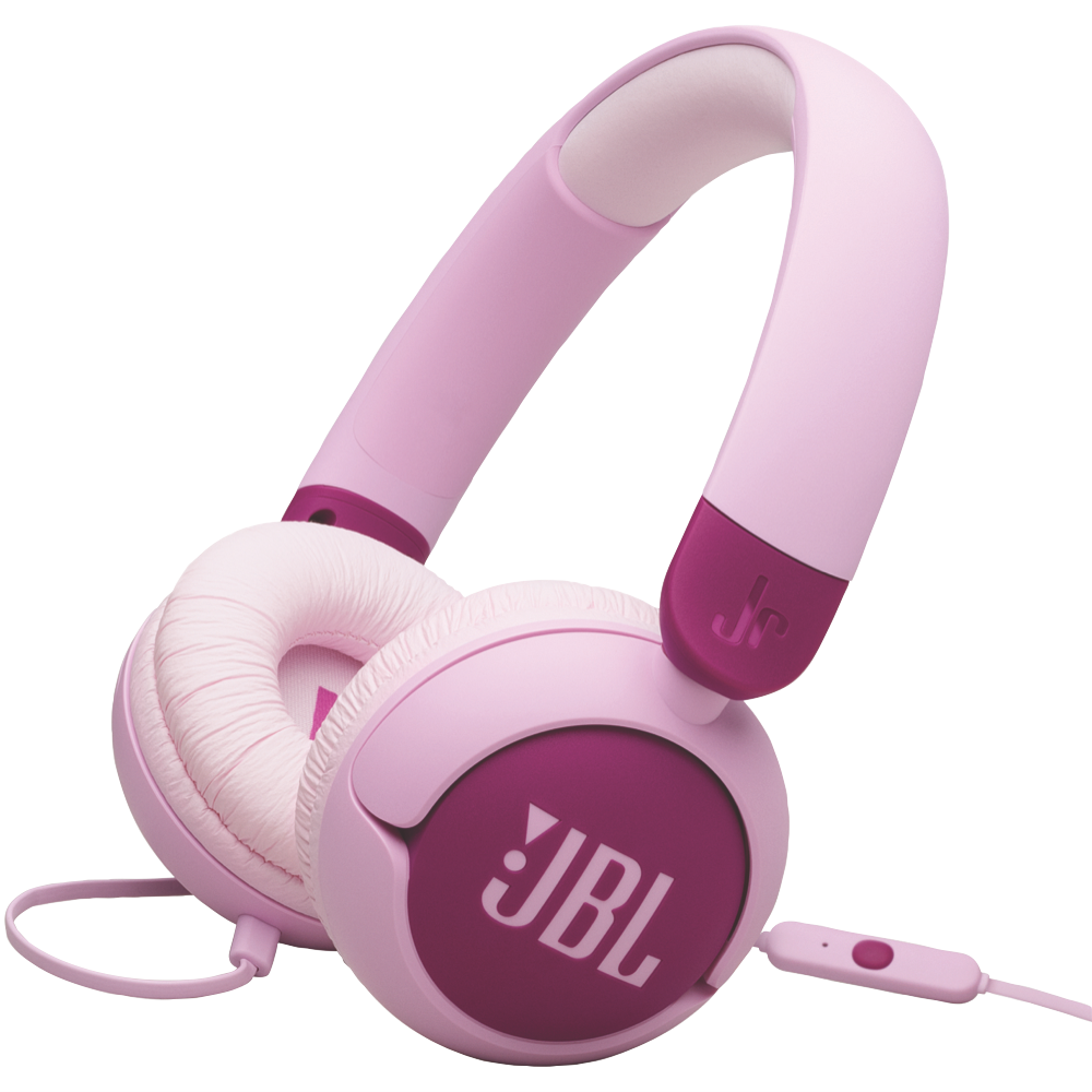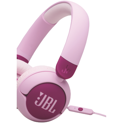 JBL Junior 320 wired on-ear headphones introduce a whole new generation to JBL sound at volumes that are safe for their ears. They won t go beyond 85dB protecting young listeners from dangerous sound levels. Designed for young listeners the JBL Junior 320 are comfortable to wear with durable oversized controls that are easy for even the littlest hands to use. A built-in mic lets kids chat with family friends or teachers easily. The headphones include a JBL sticker set so your little rockstars can personalize their look. Great sound has no age limit.