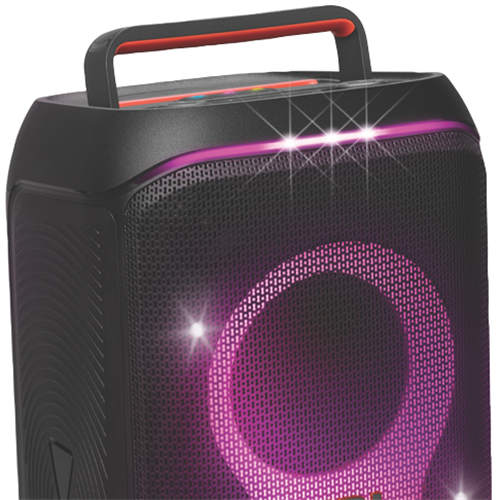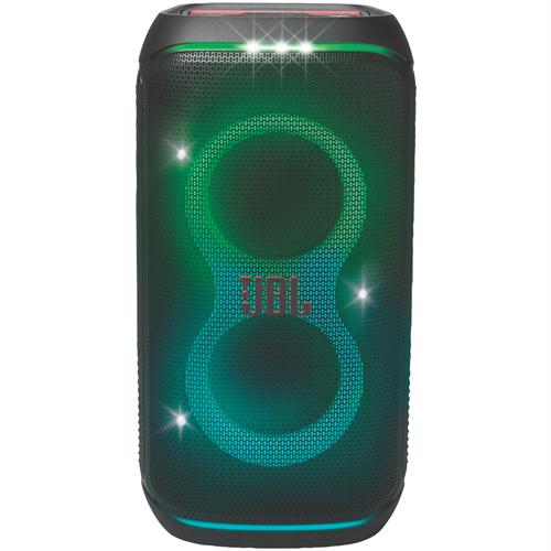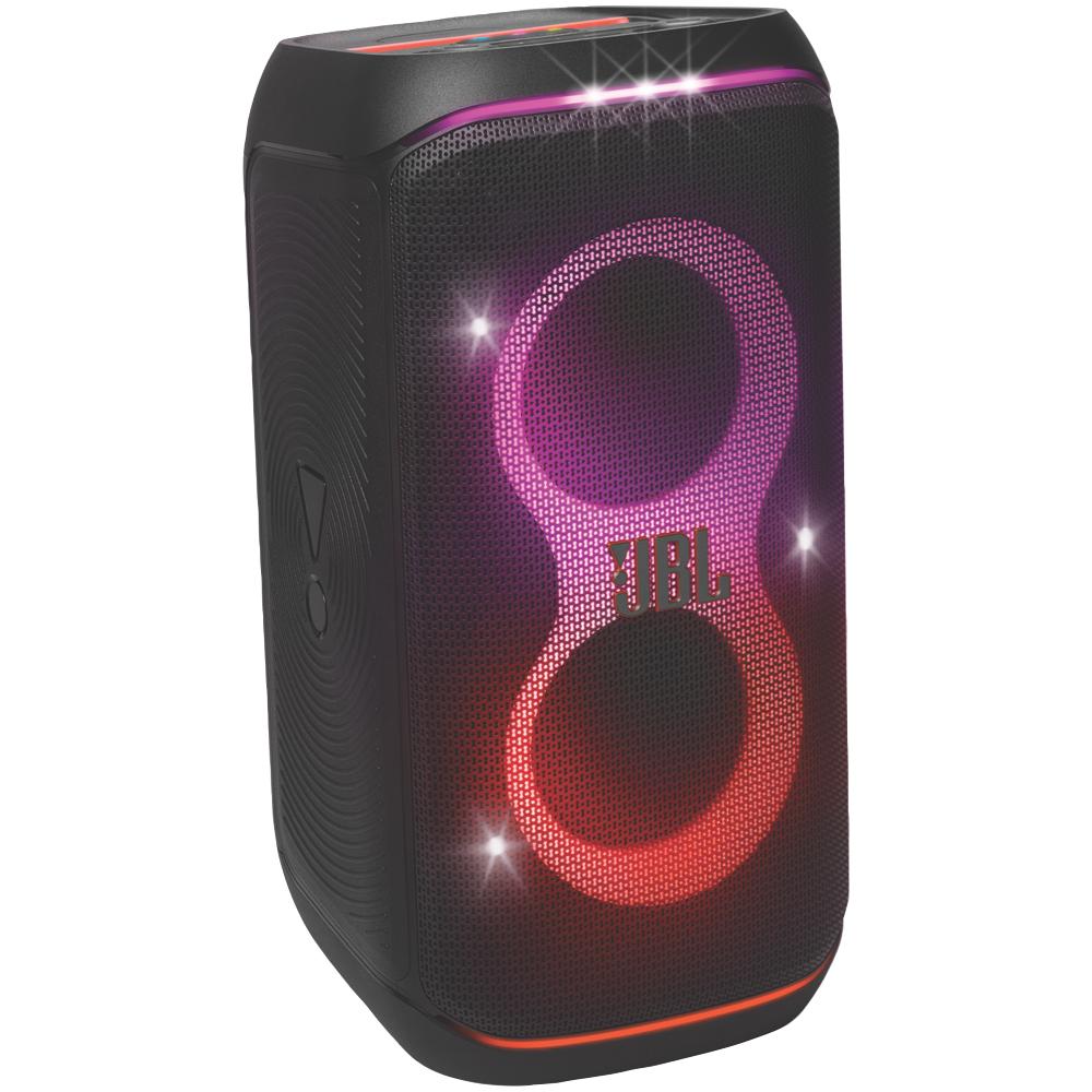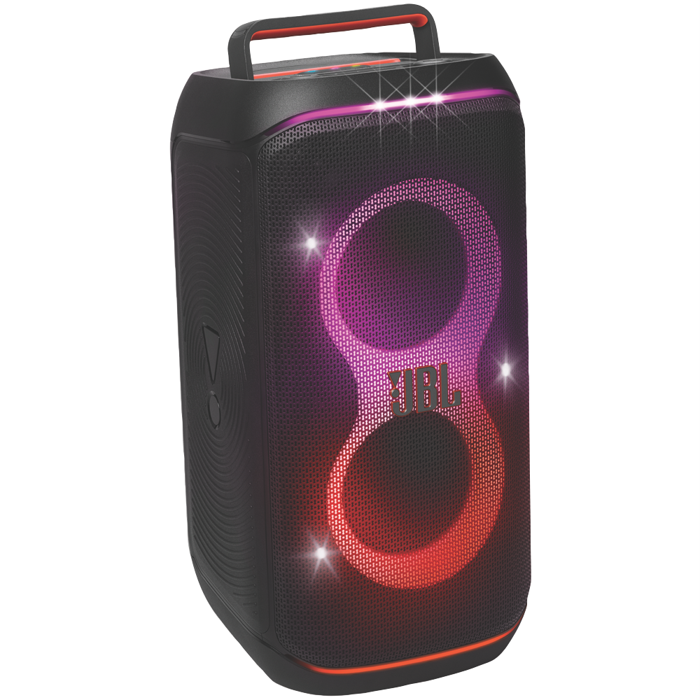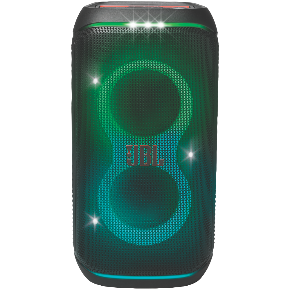 The JBL PartyBox 120 turns any space to party and vibe. Powerful JBL Pro Sound fills the air while an entrancing lightshow of starry lights cool light trails and strobe effects syncs to your beat. Instantly pair any Bluetooth device and stream your favourite party playlist or use the mic and guitar inputs to share your own sound. Either way you can steer the party s flow with fun interactive party effects using the JBL PartyBox app. A folding ergonomic handle makes the PartyBox 120 easy to take with you anywhere and the splash-proof construction means it won t be troubled by a little rain. It delivers up to 12 hours of playtime and if the party s still flowing by then just swap out the replaceable battery and keep the music and lights going strong. For an even bigger time stereo pair two JBL PartyBox 120s for a wider soundstage or use the JBL PartyBox app to connect multiple JBL Auracast-enabled speakers wirelessly. Roll up to the party with the JBL PartyBox 120.