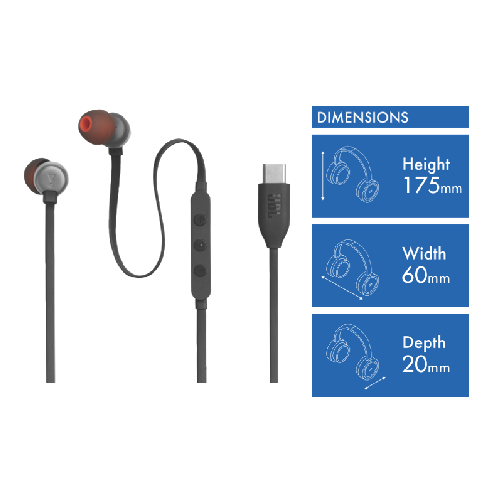 The JBL (5961863) are In Ear Wired headphones. They re lightweight comfortable and compact. A pair of 9mm dynamic drivers punch out powerful JBL Pure Bass Sound while the High-Resolution Audio support ensures great sound quality. A USB-C connection makes them compatible with a large variety of devices like PCs mobiles and gaming devices. In addition the three-button remote on a tangle-free flat cable lets you control music playback and volume adjustment EQ presets as well as answering calls on the fly with a built-in microphone. All this makes the JBL Tune 310C USB-C your everyday companion at work at home and on the road.