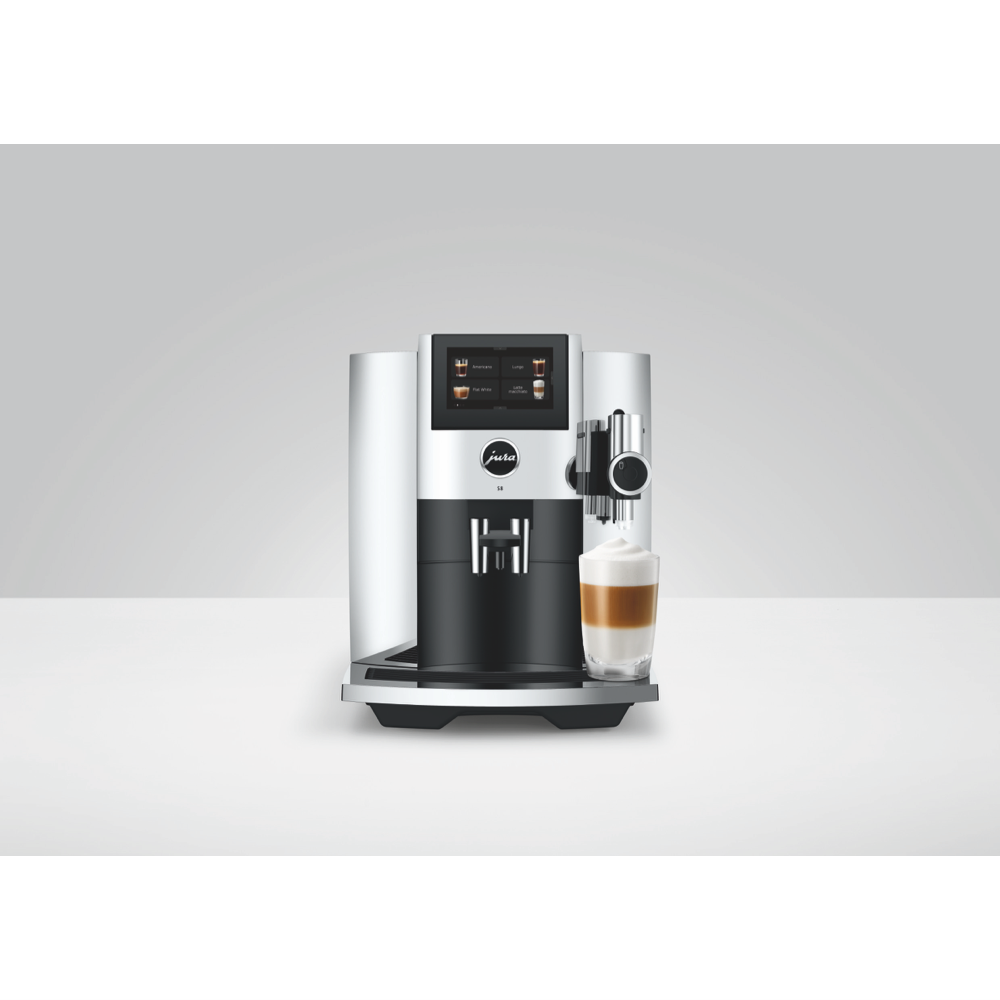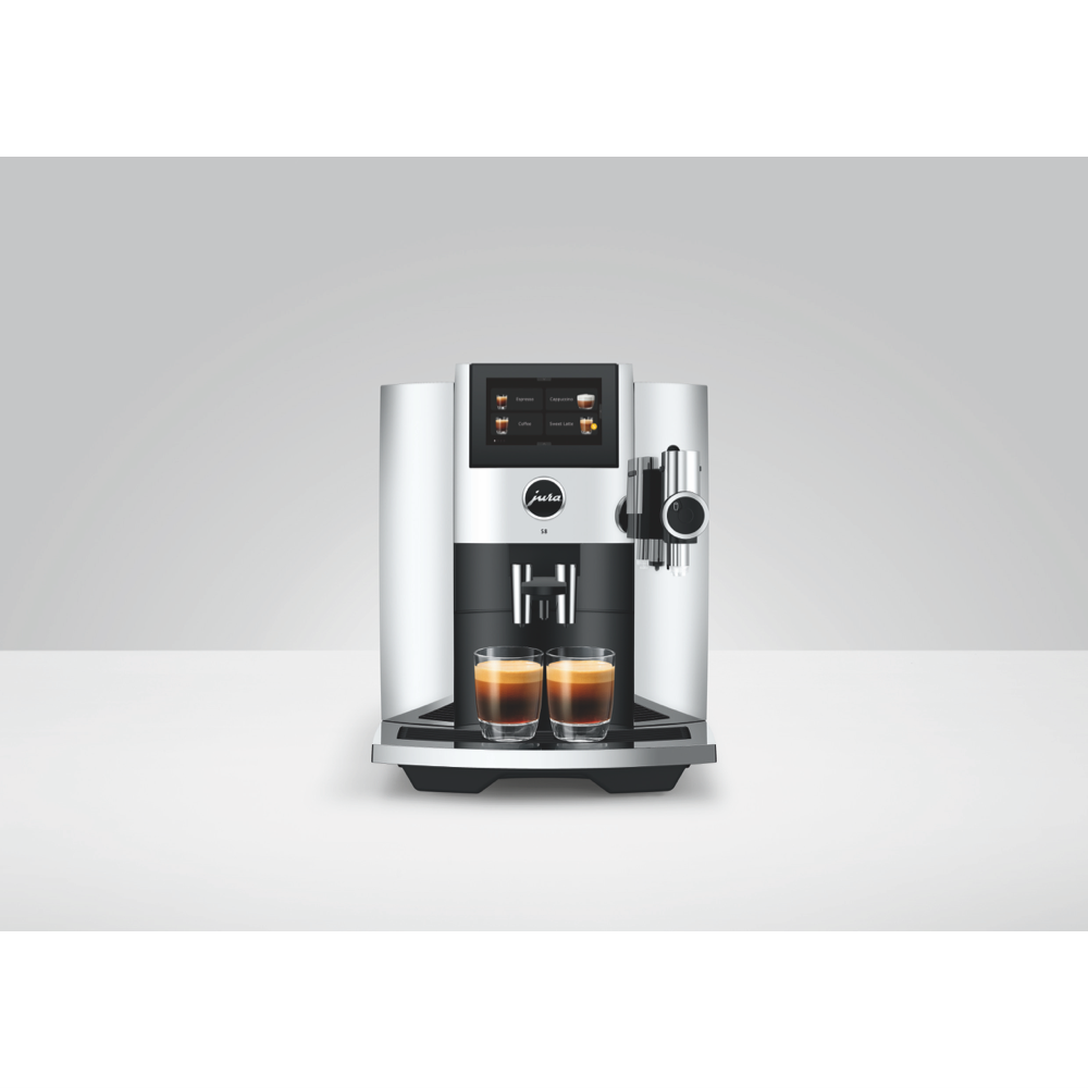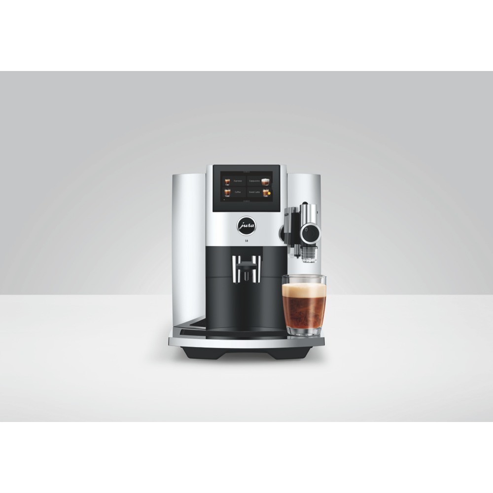 Bring barista-quality coffee to your kitchen with the JURA S8 Chrome Inter Automatic Coffee Machine. This sleek chrome-finished machine packs a punch with its 15 bar pump pressure and 1.9L water tank capacity. Want to craft your perfect cup? The built-in grinder milk frother and Pulse Extraction Process let you customize to your heart's content. Plus with features like intelligent preheating 3D brewing technology and the JURA Cockpit display you'll have a user-friendly brewing experience every time. The one-touch function and touchscreen make operation a breeze while the auto shut-off gives you peace of mind. Experience coffee shop quality at home with the JURA S8 15651.
