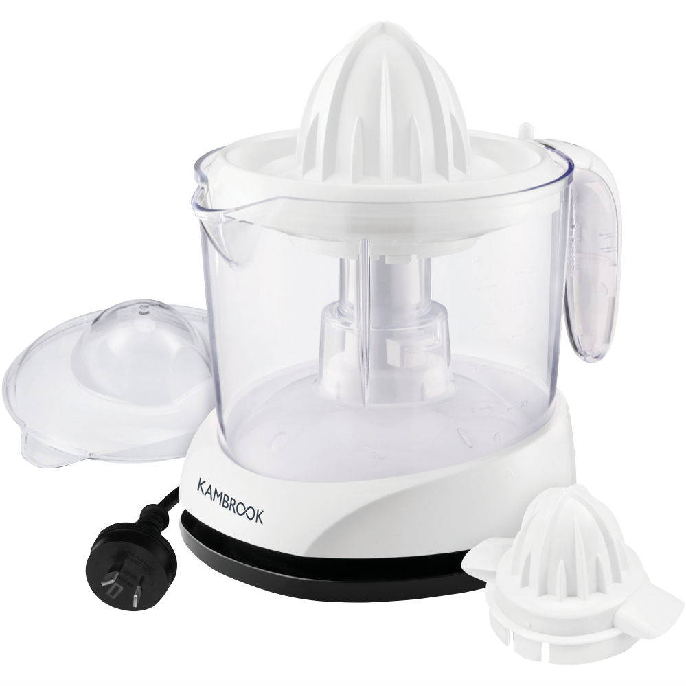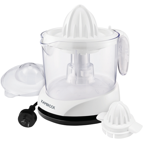Citrus lovers rejoice! The Kambrook 2 Cone Citrus Press offers a revolutionary juicing experience right in your own kitchen. With its dual rotation system and reverse juicing action this white citrus juicer extracts more juice from oranges grapefruits lemons and limes than ever before. The removable pulp strainers with adjustable settings provide customized filtration while the small and large juicing cones let you juice any sized citrus fruit. Whether you're preparing fresh orange juice for breakfast or lemon water after a workout you'll love the 1L capacity that lets you make juice for the whole family. Cord storage in the base keeps your countertop tidy. Give your daily vitamin C routine a boost with the Kambrook 2 Cone Citrus Press. The manufacturer's part number for this product is KCP110WHT2JAN1. Bring home this citrus juicing innovation today.