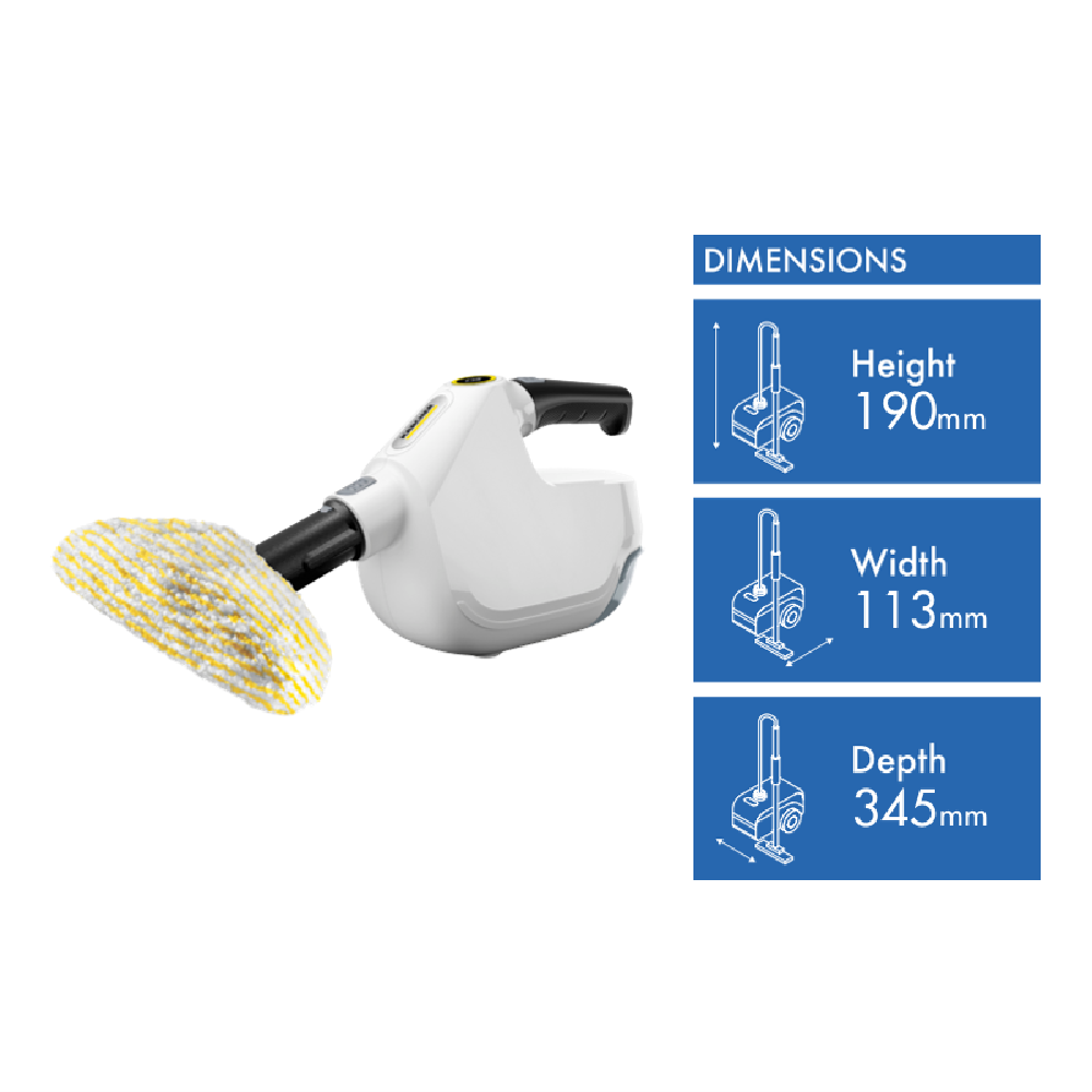 The comact SC 1 Multi handheld steam cleaner cleans without chemicals and is ready for deep cleaning in a flash. Thorough cleaning removes up to 99.99% of viruses(1) and 99.99% of all common household bacteria(2) from hard surfaces. The compact and practical design of the device makes it comfortable to use and easy store in the smallest of spaces. The SC 1 Multi is ready for use in 30 seconds and is easy to refill thanks to the removable water tank - for longer maintenance intervals and fewer interruptions. The replaceable descaling cartridge ensures automatic descaling for a product lifetime that is five times longer. The LED light display with control panel enables simple and effortless operation. The various modes such as heating up ready-to-use steam mode and cartridge change are always on display. There is alos the option of extending to the innovative multifunctionla 4-in-1 steam mop.