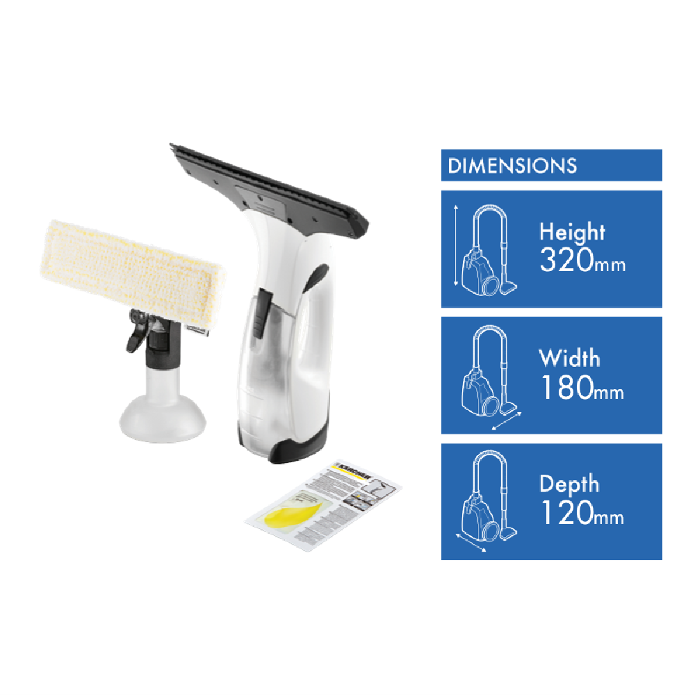 The Karcher WV2 Window Vacuum makes cleaning windows a breeze! This handheld window vac effortlessly removes dirt grime and streaks from glass surfaces leaving them spotless and crystal clear. Powered by a lithium-ion battery it provides up to 25 minutes of cordless cleaning time on a single charge. The lightweight design at just 0.6kg allows for easy maneuverability while the compact dimensions of L120 x W180 x H320mm enable access to tight spaces. It comes with a 280mm suction nozzle and a 20ml bottle of window cleaner concentrate. The manufacturer's part number for this product is 1.633-653.0. Enjoy the convenience of streak-free windows with the Karcher WV2 window vacuum cleaner backed by a 2-year manufacturer's warranty for added peace of mind.