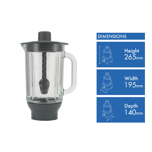 Bring your blending game to the next level with the Kenwood Glass Blender Attachment. This versatile attachment opens up a world of possibilities allowing you to pulverise fruits crush ice and blend smoothies and shakes with ease. With hardened borosilicate glass that's built to last you can blend to your heart's content without fear of wear and tear. The sleek tapered design not only looks great on your Kenwood mixer but promotes improved circulation and blending. Simply lock the attachment into place and you're ready to blend a wide array of ingredients into mouthwatering creations. Whether you're preparing breakfast smoothies homemade hummus or healthy salad dressings this Kenwood blender attachment has you covered. Unleash your inner mixologist and turn your kitchen into a cocktail bar using the blender to whip up frozen margaritas daiquiris and other chilled treats. With the power of your Kenwood mixer behind it this high-quality blender makes light work of anything you throw its way. Durable versatile and easy to use the Kenwood Glass Blender Attachment will take your food prep to the next level. The manufacturer's part number for this product is KAH359GL. Check out the Kenwood Glass Blender Attachment today.