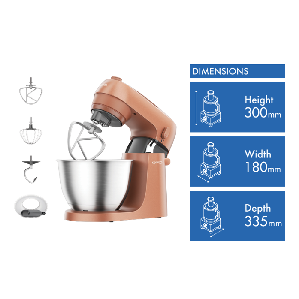 Additional Features Exclusive optional Kenwood Go attachments like blender cup, Height adjustable tools, Rotatable splashguard, Integrated measuring spoon