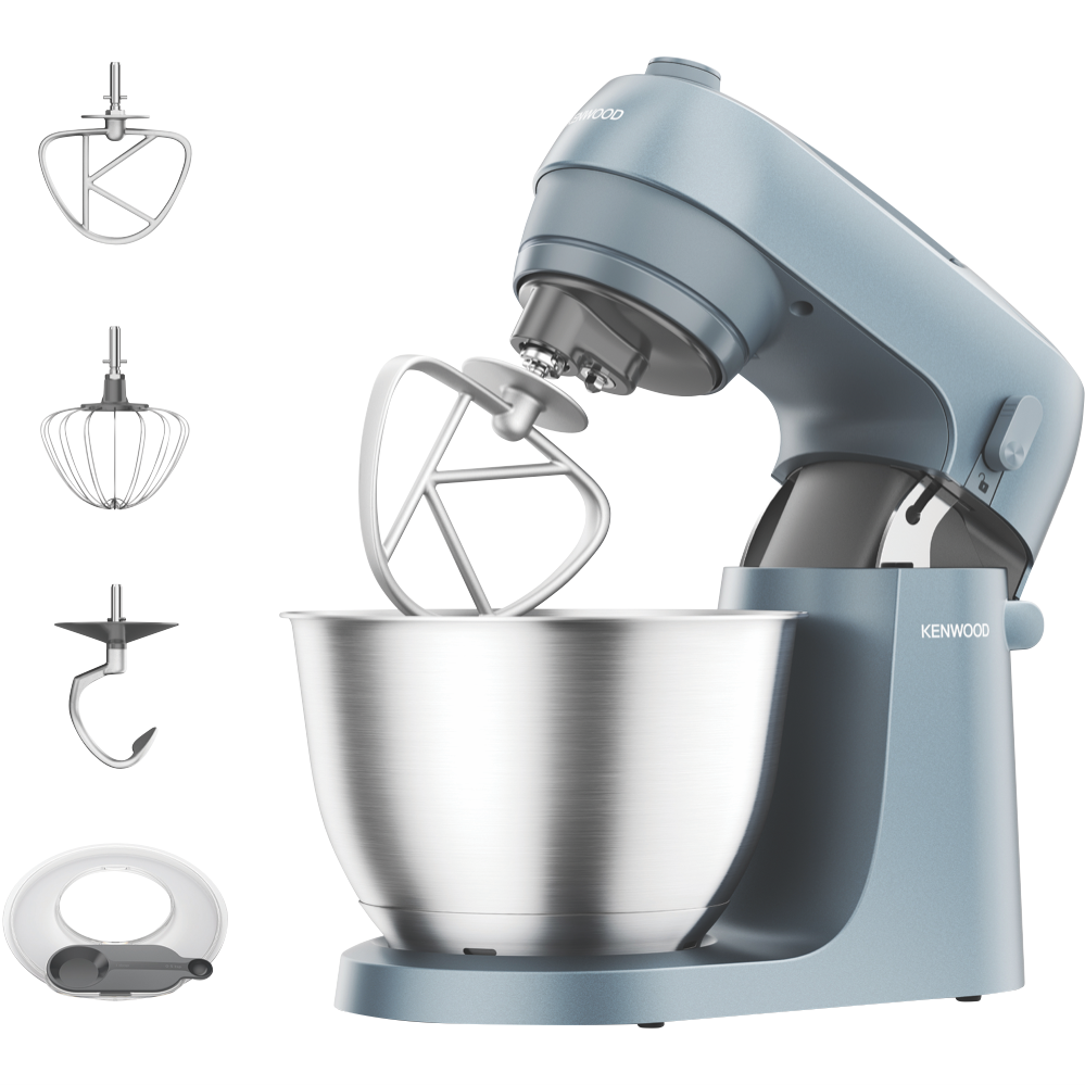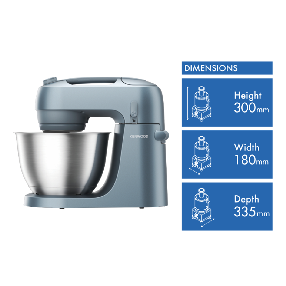 Looking for a versatile mixer that won't take up too much space? The Kenwood Go Stand Mixer in Storm Blue is your kitchen helper. This compact powerhouse has a 1.8kg working bowl capacity and 800 watts of power to handle all your mixing needs. With 6 speeds plus pulse you can whip up everything from fluffy meringues to hearty bread dough. The soft start feature prevents splashes while the easy carry handle makes it simple to move around. It comes with a stainless steel whisk K-Beater and dough tool all dishwasher safe for easy cleanup. At just 300mm tall and 180mm wide it fits nicely on your counter. Plus you'll have peace of mind with a 5-year warranty. The model number is KZM35000GY.