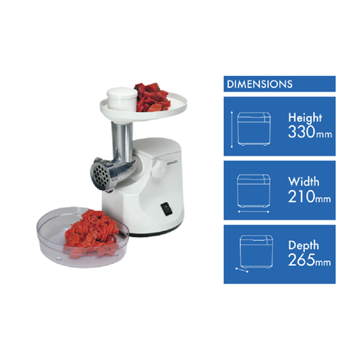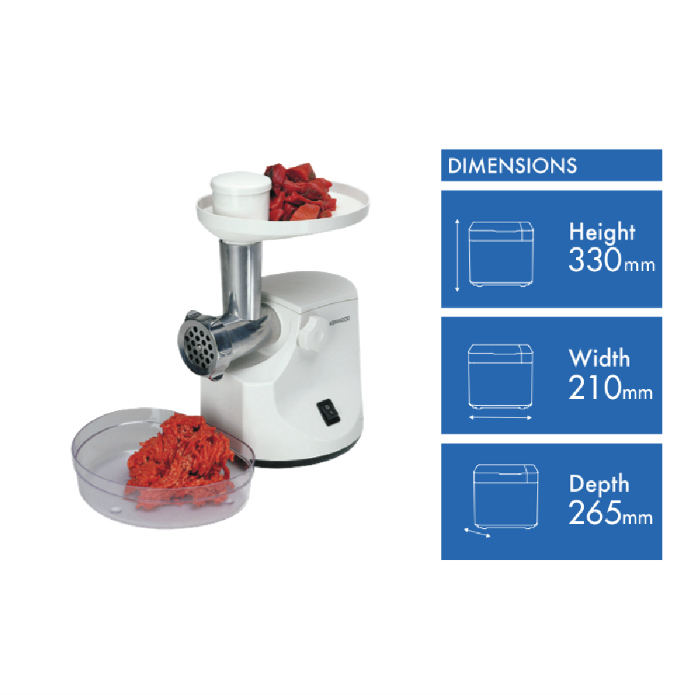 Slice and dice with ease using the Kenwood Meat Grinder. This powerful kitchen appliance makes light work of grinding meat for sausages burgers and more. With a heavy-duty motor and sharp stainless steel blades it minces meat in seconds. The two speed settings let you choose a fine or coarse grind for perfect texture every time. Its compact size takes up minimal counter space and the components are dishwasher safe for no-fuss cleanup. Prepare homemade sausages and burgers that are fresher and healthier than store-bought with the Kenwood Meat Grinder. Unlock your inner chef and craft delicious creations for the whole family. The manufacturer's part number for this product is MG450. Check out this must-have appliance today.