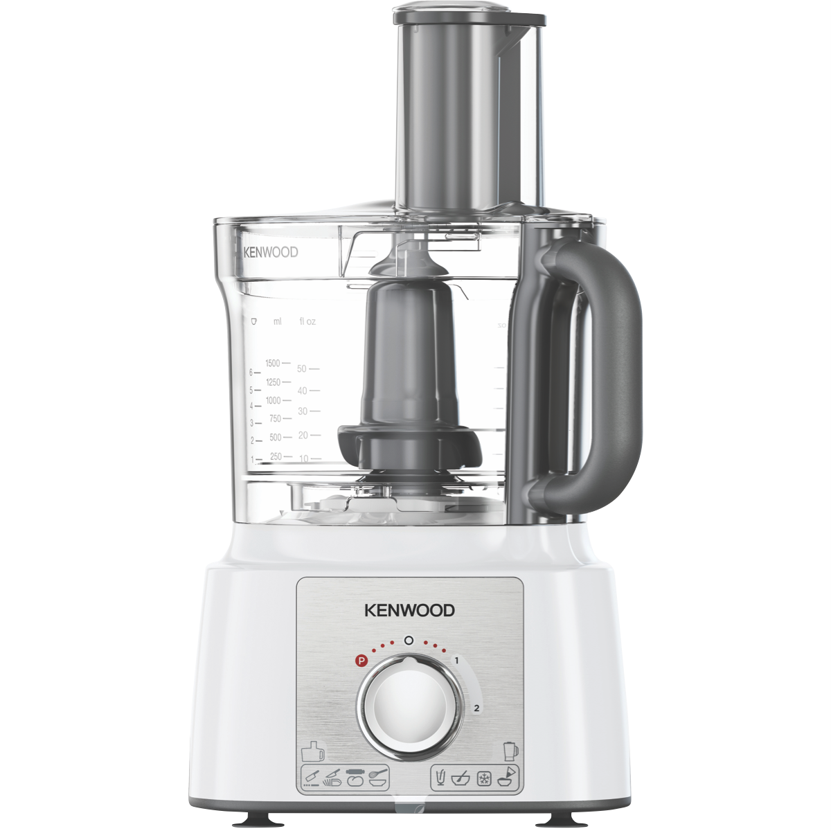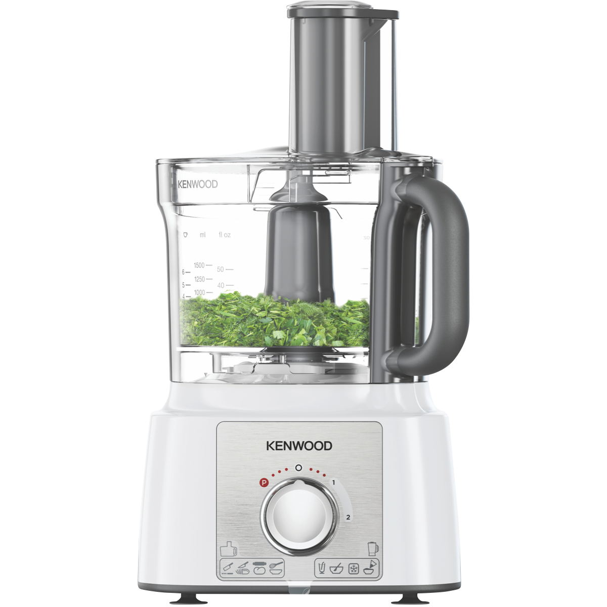 Experience the versatility and power of food preparation with the Kenwood Multipro Express Food Processor. This sleek white food processor with a stainless steel panel makes quick work of all your slicing dicing mixing and blending needs. With a generous 3L bowl 1000W motor and 2 speeds plus pulse function you can whip up anything from sauces to doughs in minutes. The MultiPro range is designed for families with accessories like the Express Dice for uniform cubes slicer discs for veggies a blender for smoothies and a spatula for scraping every last bit from the bowl. Cleaning up is a breeze too as all parts are dishwasher safe. Weighing only 3.9kg the Multipro Express is compact enough to store in any kitchen. With thoughtful touches like a storage bag for accessories Kenwood proves food prep can be fuss-free. From chopping nuts to whipping cream or blending a batch of muffins this do-it-all food processor simplifies cooking for the whole family. Treat yourself to faster healthier homemade meals with the Kenwood Multipro Express. The manufacturer's part number for this product is FDP65740WH.
