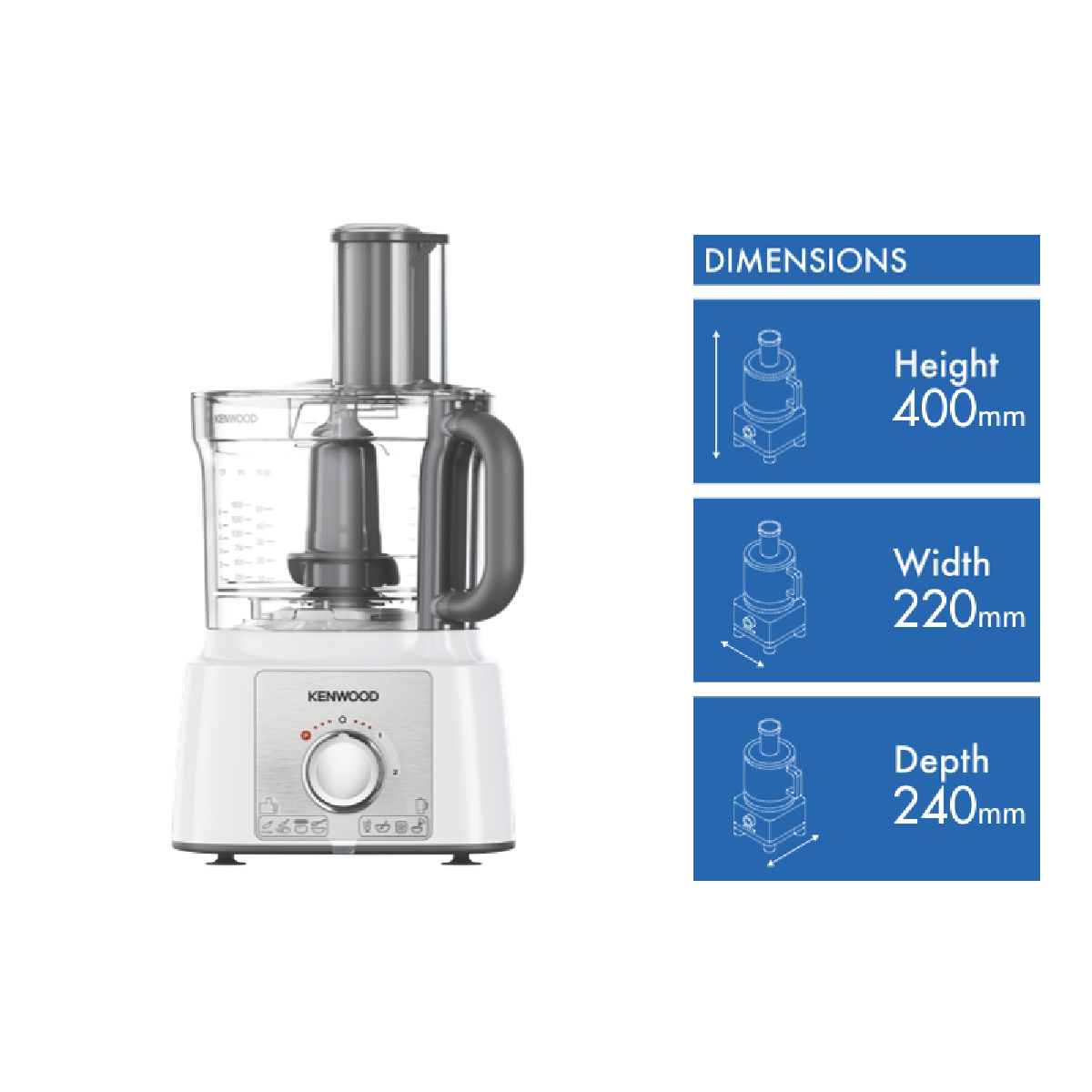 • Food processor with 3 Litre bowl and 1.5 Litre blender